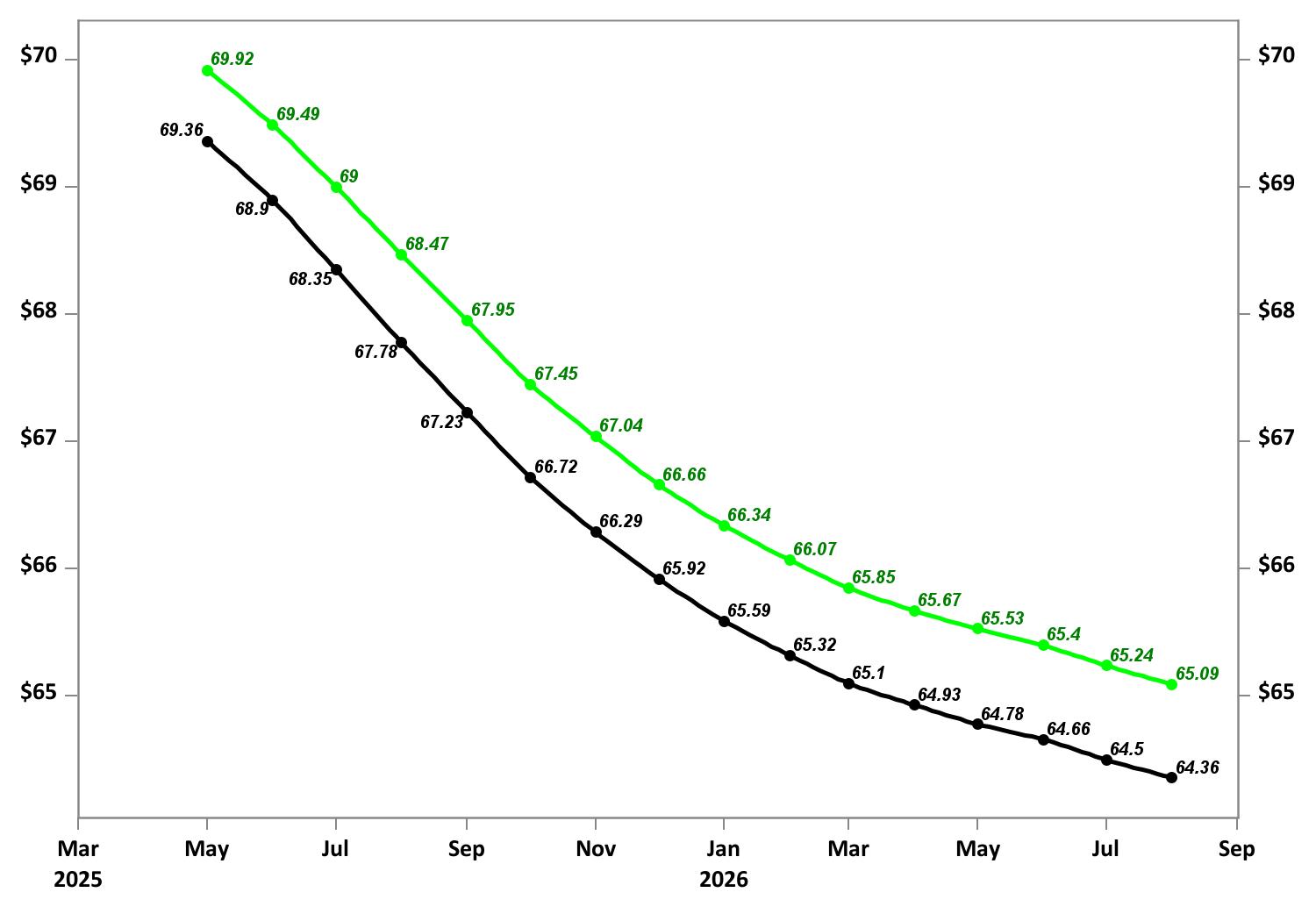 Previous Forward Curve (Green)