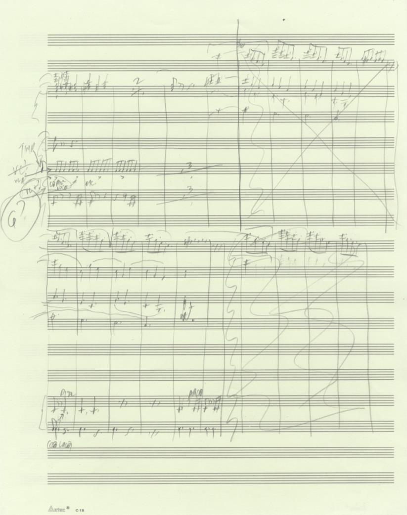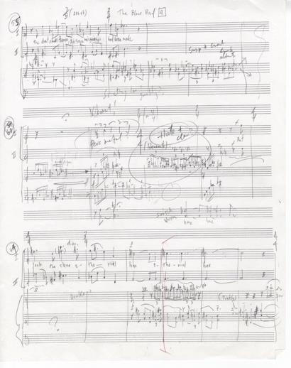 29 pp. + 2 pp. of additional manuscript apparently not included in the final version. Oblong quarto (278 x 208 mm). Unbound, folded. Notated in pencil on 16-stave paper. Signed and dated New York, Jan-April 1997.