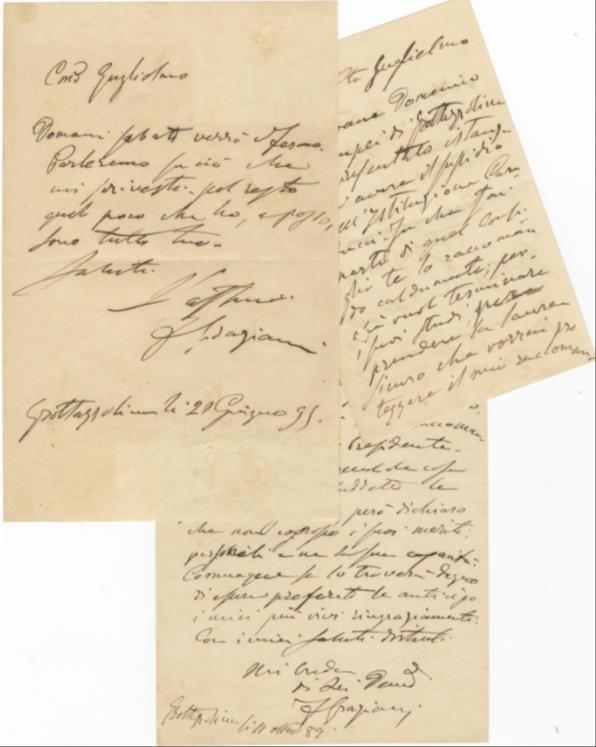 Group of 4 letters consisting of three autograph letters and one secretarial letter signed, all to Count Guglielmo Vinci (1850-1922).d