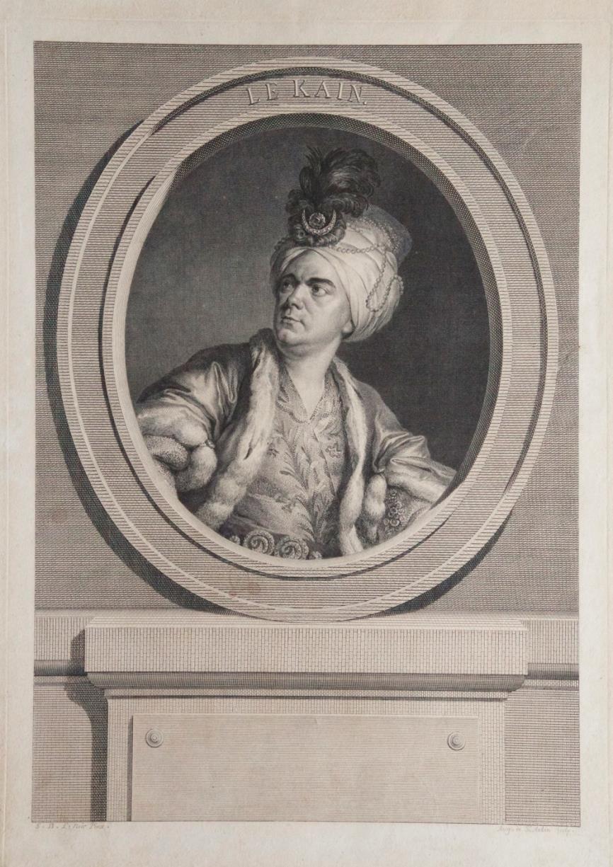 Original engraving by Auguste de St.-Aubin after the painting by S.B. Le Noir. Le Kain is depicted in the role of Orosmane in Voltaire's "Zaire." 420 x 282 mm. No place, no date, but Paris, ca. 1775. Slightly browned and foxed.