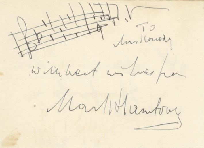 "[His] operatic repertory was wide. He was especially renowned for his performances of Wagner and Verdi ... and was also a fine orchestral conductor, admired for reliability, clarity and elegance, and for his sensitivity as an accompanist ... During his lifetime he achieved considerable success with his own operas." J.A. Fuller Maitland in Grove Music Online. (16221) $100
