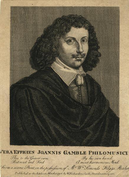 Gamble was a 17th century English cornett player, violinist, copyist, and composer. (22775) $350