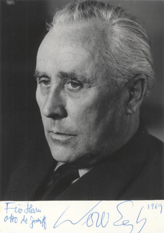 A German composer and pupil of Carl Orff, "between 1927 and 1929 Egk established contact with Kurt Weill, Hans Flesch, Bertolt Brecht and Erwin Piscator. The dramatic works that followed, for which Egk often served as his own librettist, embrace a range of genres from marionette theatre ... to radio documentary." Andrew D. McCredie in Grove Music Online. (20685) $75