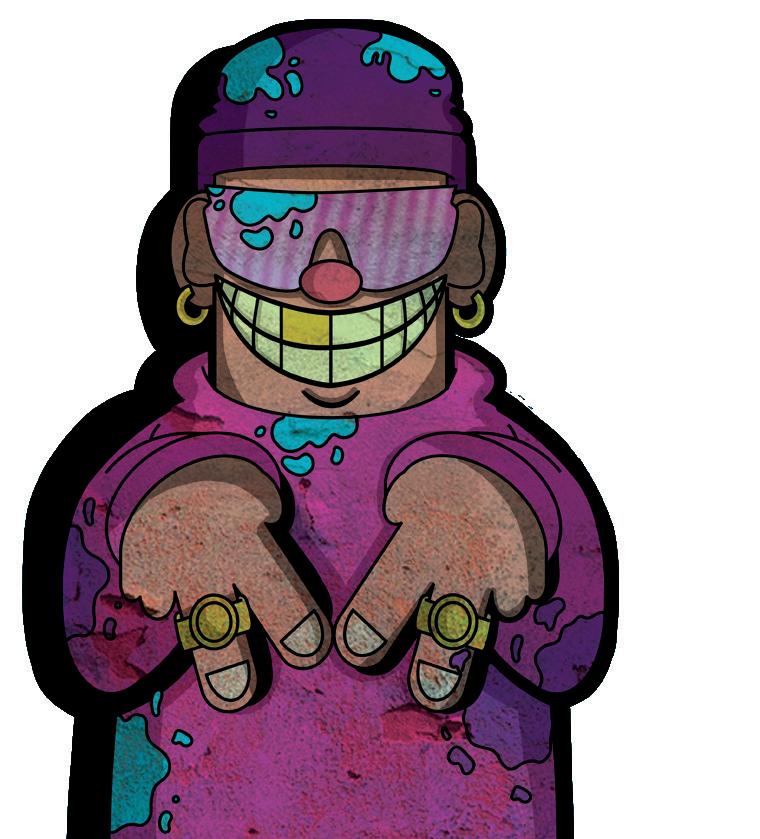 Descripción: El graffitero hurtos es conocido por su estilo audaz y letras elaboradas que adornan paredes urbanas con mensajes políticos y sociales.