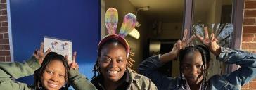 Janae Legette, Resource and Education Coordinator, (pictured in the center) spending time with youth at the Hannah More Family Shelter.