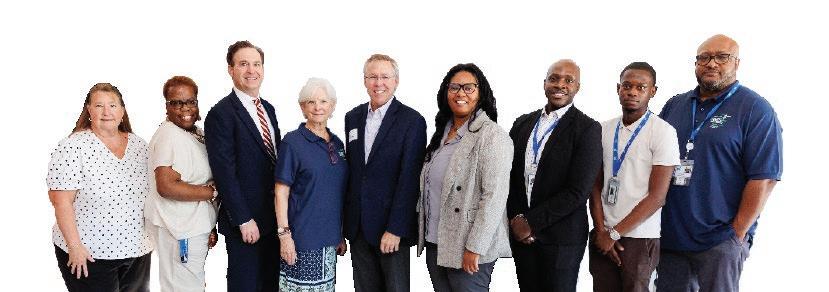 Baltimore County Executive Kathy Klausmeier, SVDP of Baltimore President and CEO John Schiavone, and Mark Millspaugh, Director of the Baltimore County Department of Social Services, along with members of the SVDP of Baltimore leadership team and other staff from Baltimore County Department of Social Services. Photo taken by Lauren Watley, Creative Director of Baltimore County.