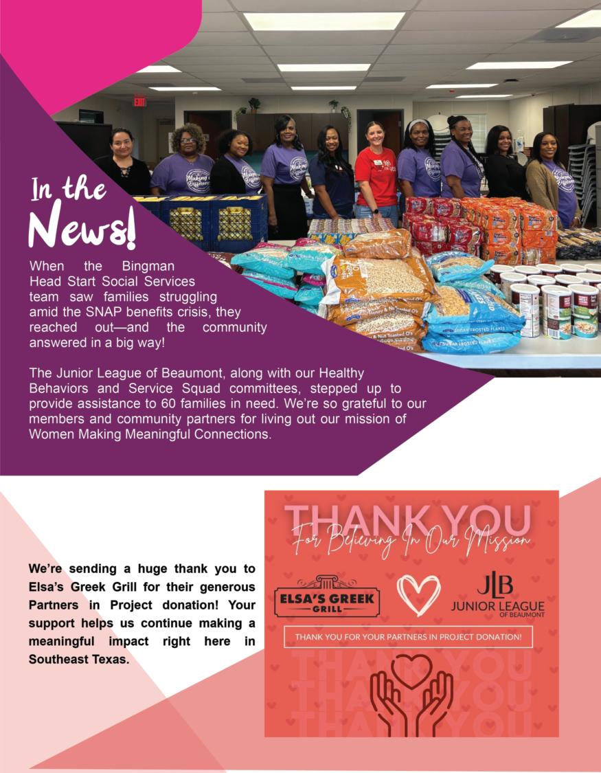 SPECIAL SHOUTOUT TO: Jake Tortorice of Rao’s Bakery for their generous donation and continued support of the Junior League of Beaumont!