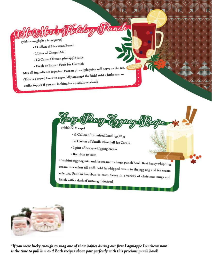 If you were lucky enough to snag one of these babies during our first Lagniappe Luncheon, now is the time to pull him out! Both recipes above pair perfectly with this precious punch bowl!