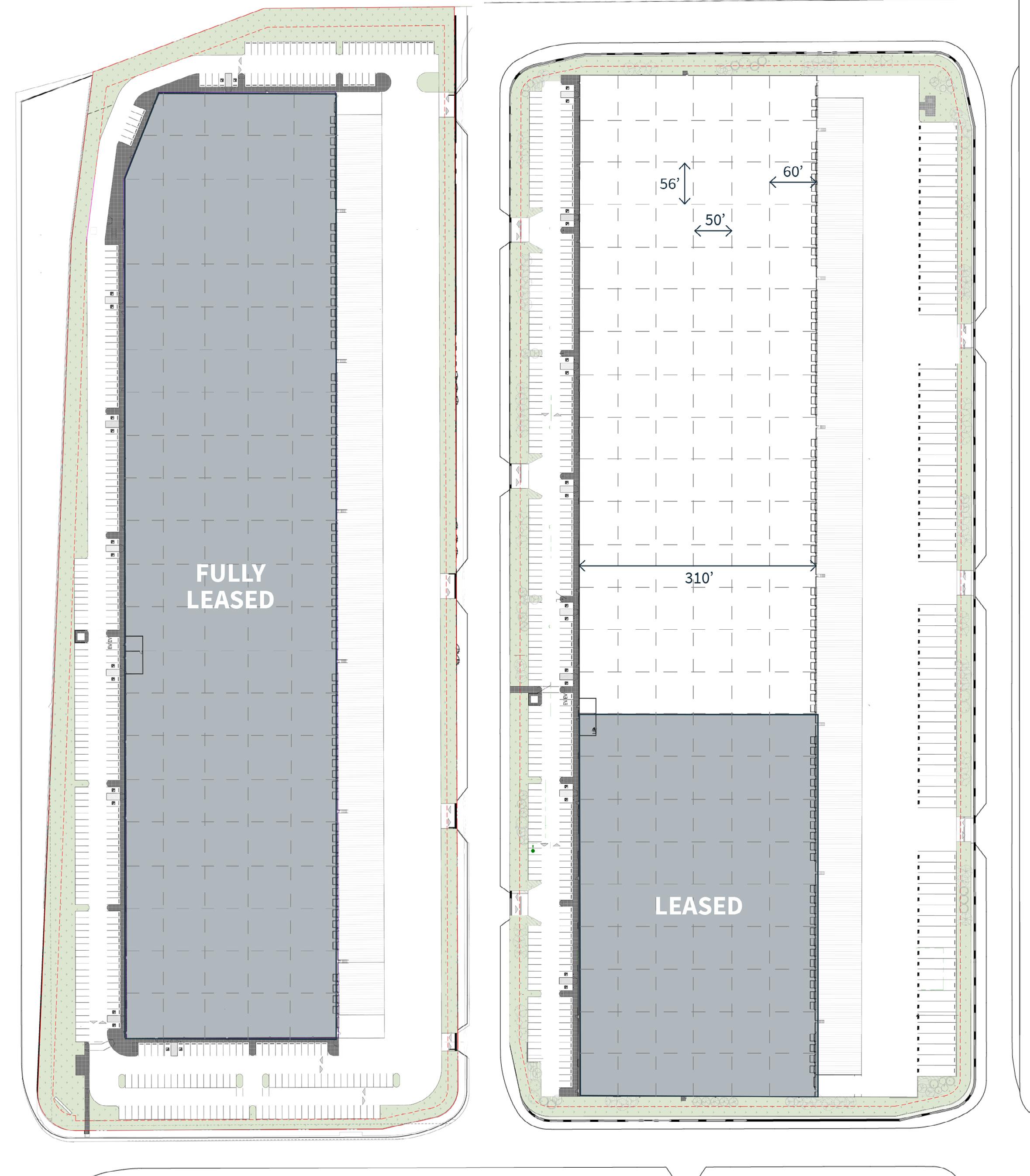 Column Spacing 50’ x 56’ (60’ Marshalling Bays)