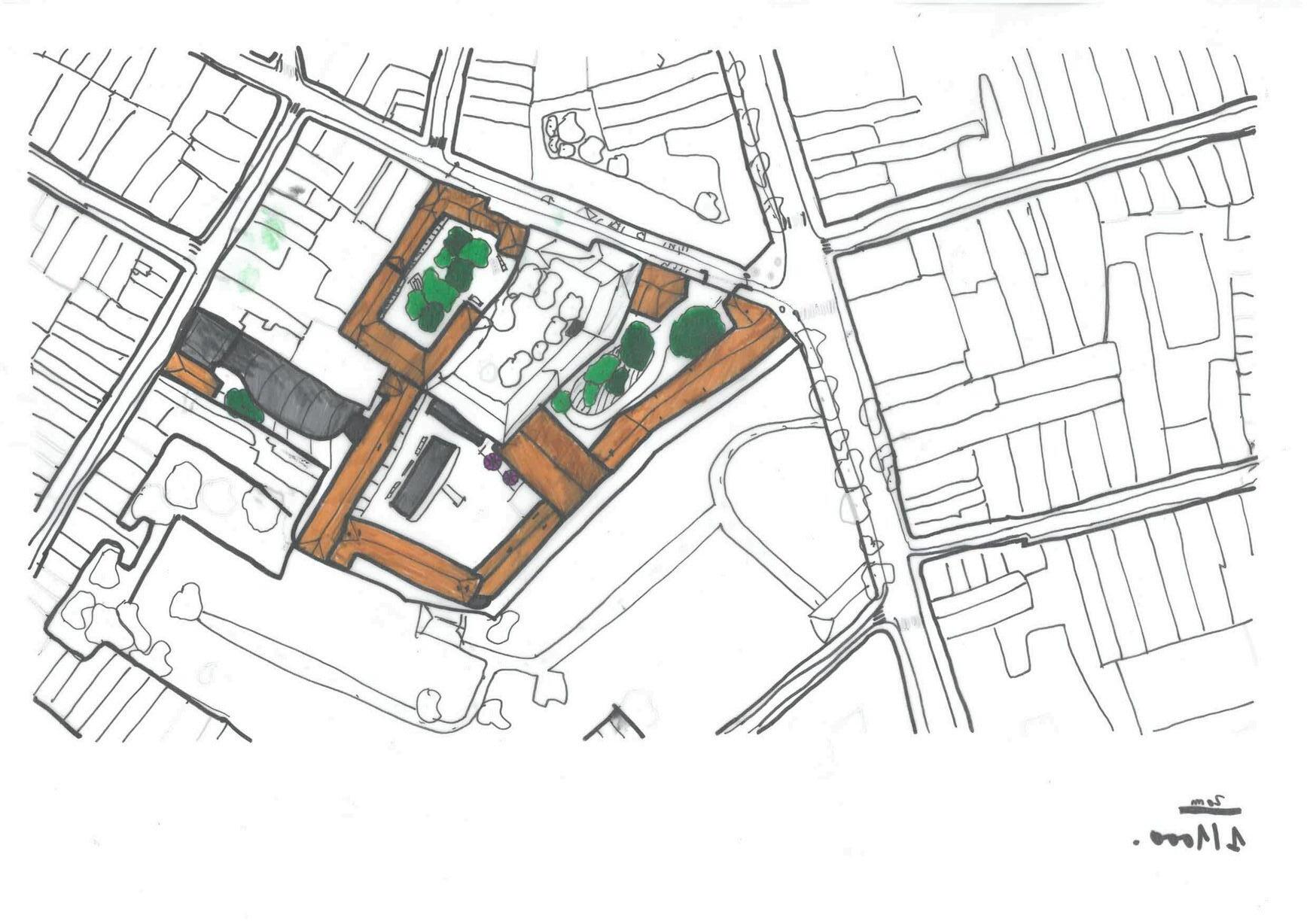 Pendant mon stage chez AREP, l’agence pluridisciplinaire, j’ai réalisé un plan masse et un plan en coupe sur la base d’un plan cadastral.