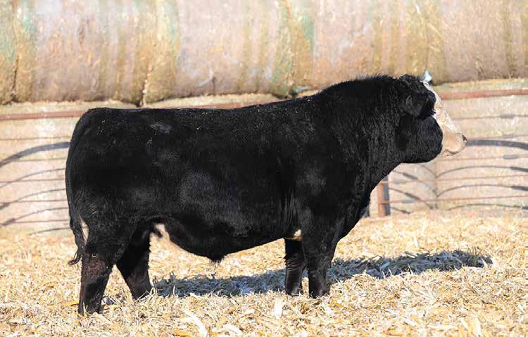 Here is a leading son of KRJ Dakota Outlaw G974 that comes from the $17,000 W/C Miss Werning 124J that is the WINC Mahomes 979G sired maternal sister to the richest earning Simmental female in history, Miss Werning KP 8543U. This high growth, homozygous polled and homozygous black stud is one that came to the weaning pen with an impressive advantage over the median. His 820lbs. WW ratioed a 108 and he recorded a monster 18+ inch ribeye. This purebred comes in a dense bodied package, is burly in his skeleton and reads to be impressive in his maturity pattern. Highlights of his EPD profile include top 15% WW, YW & MWW figures. Last year his maternal brother sold for $11,000 to Cory Gillen.