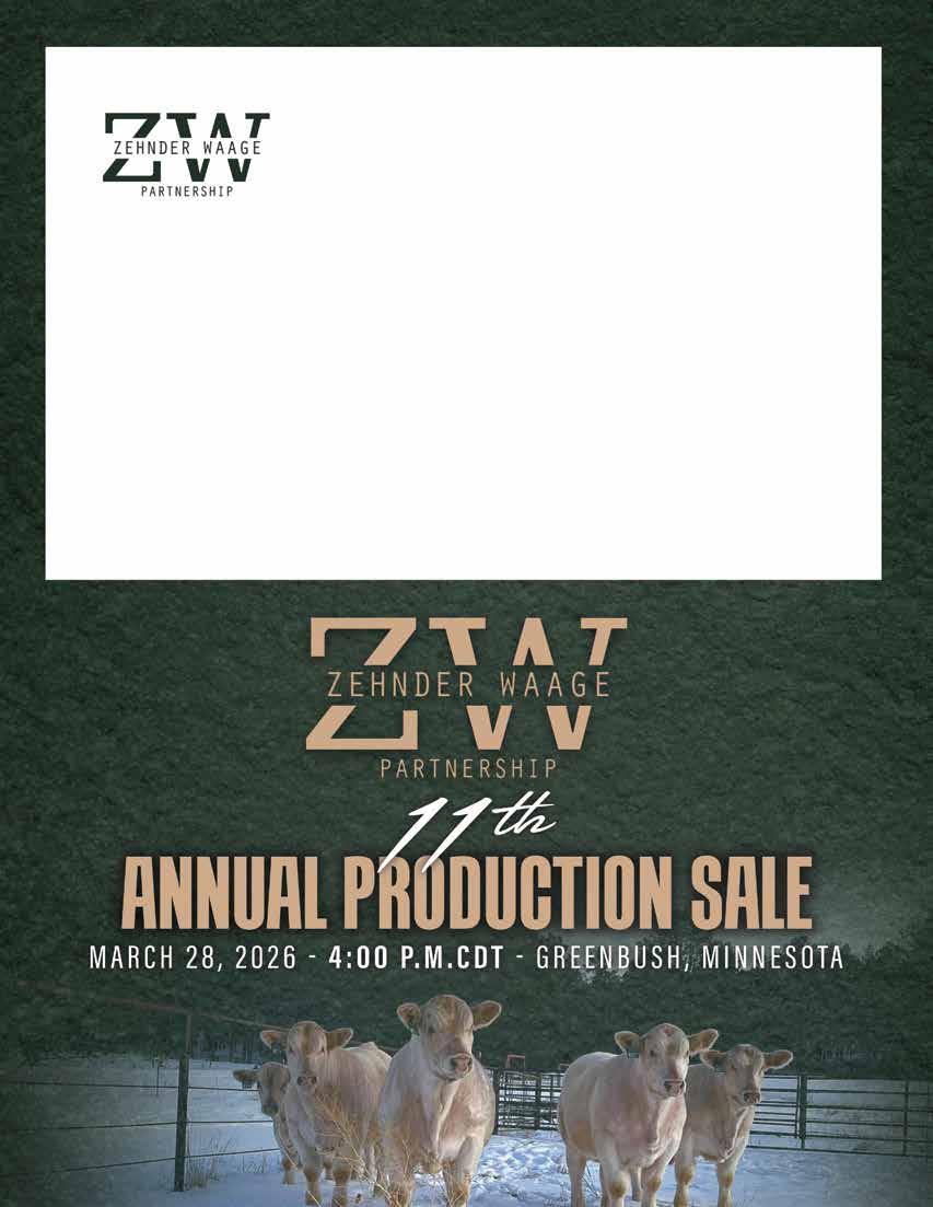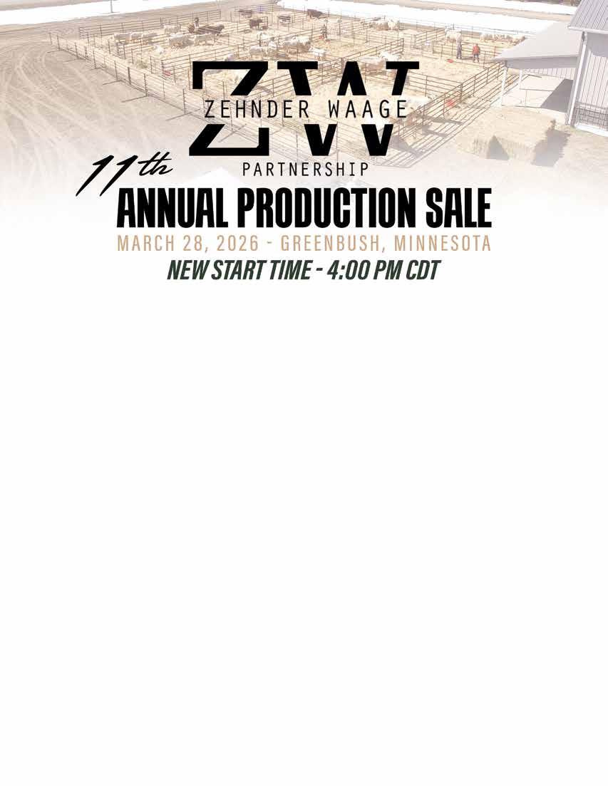 Welcome to the 11th Annual Zehnder Waage Partnership Production Sale on Saturday, March 28th in Greenbush, MN.