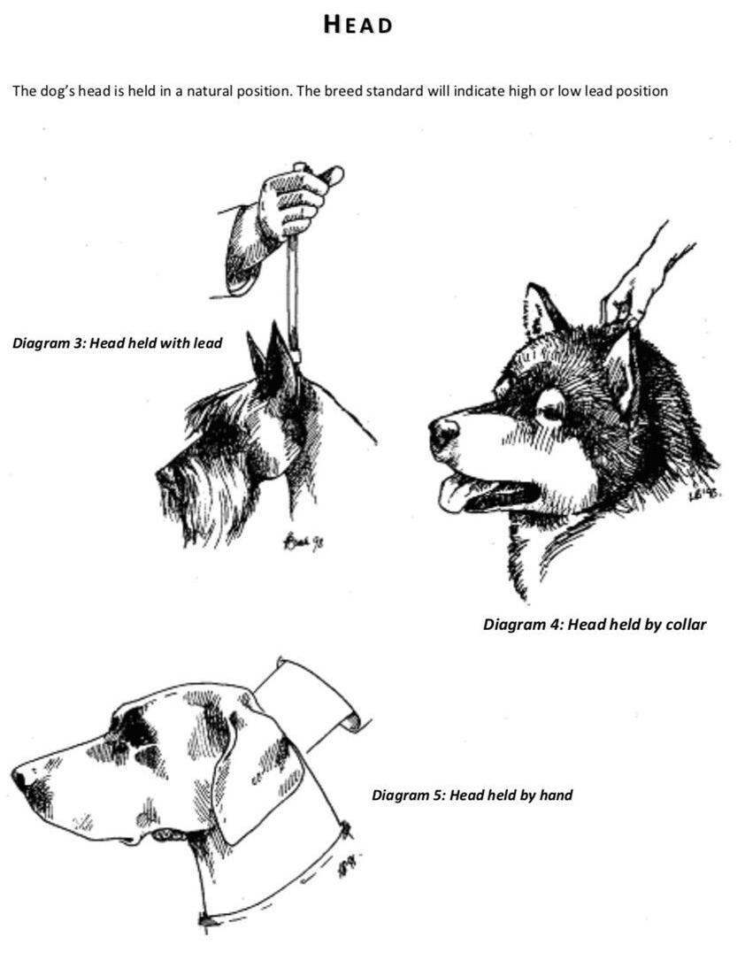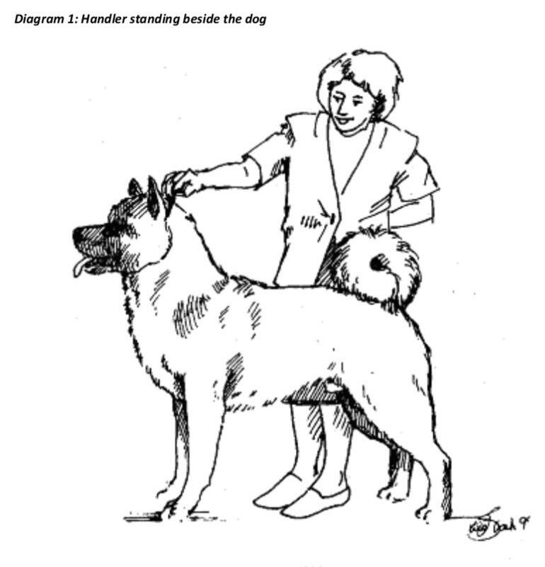 It is important to practice standing the dog on the ground and if needed the table. On the ground to allow the judge to see the outline of the dog and for the dog to be standing balanced without legs been over or under stacked and hold that shape. On the table it is important to be at the front of the table and more towards the side of the judge. This is so the judge can easily reach the dog and perform the physical examination without overreaching. Standing correctly with a balanced outline is just as important on the table. Both require regular practice and giving the dog praise for doing it correctly. Another important reason for show training classes and to attend dog shows to watch how the experience handlers do it. Mouthing/showing teeth, is another extremely important skill. The judge will normally check this themselves so it is so important to train your dog to be accustomed to having this done by a stranger. There are at times the judge will ask you to mouth your dog for them. Both skills need practice.