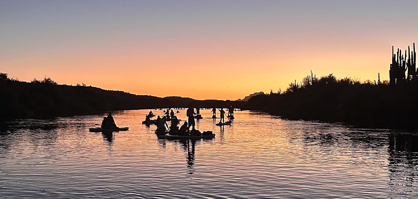 And then there’s the sky. Arizona sunsets are famous for a reason. As you paddle, the horizon shifts through layers of orange, pink, and violet, reflecting off the calm surface of the river. It’s hard not to pause, plant your paddle across the board, and just take it all in.