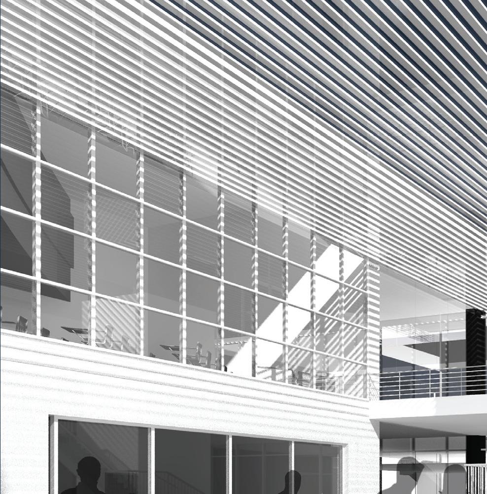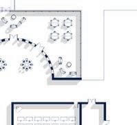 is the faculty office. The bottom level contains a large cafeteria with two serving stations and agreeable lounging space.
