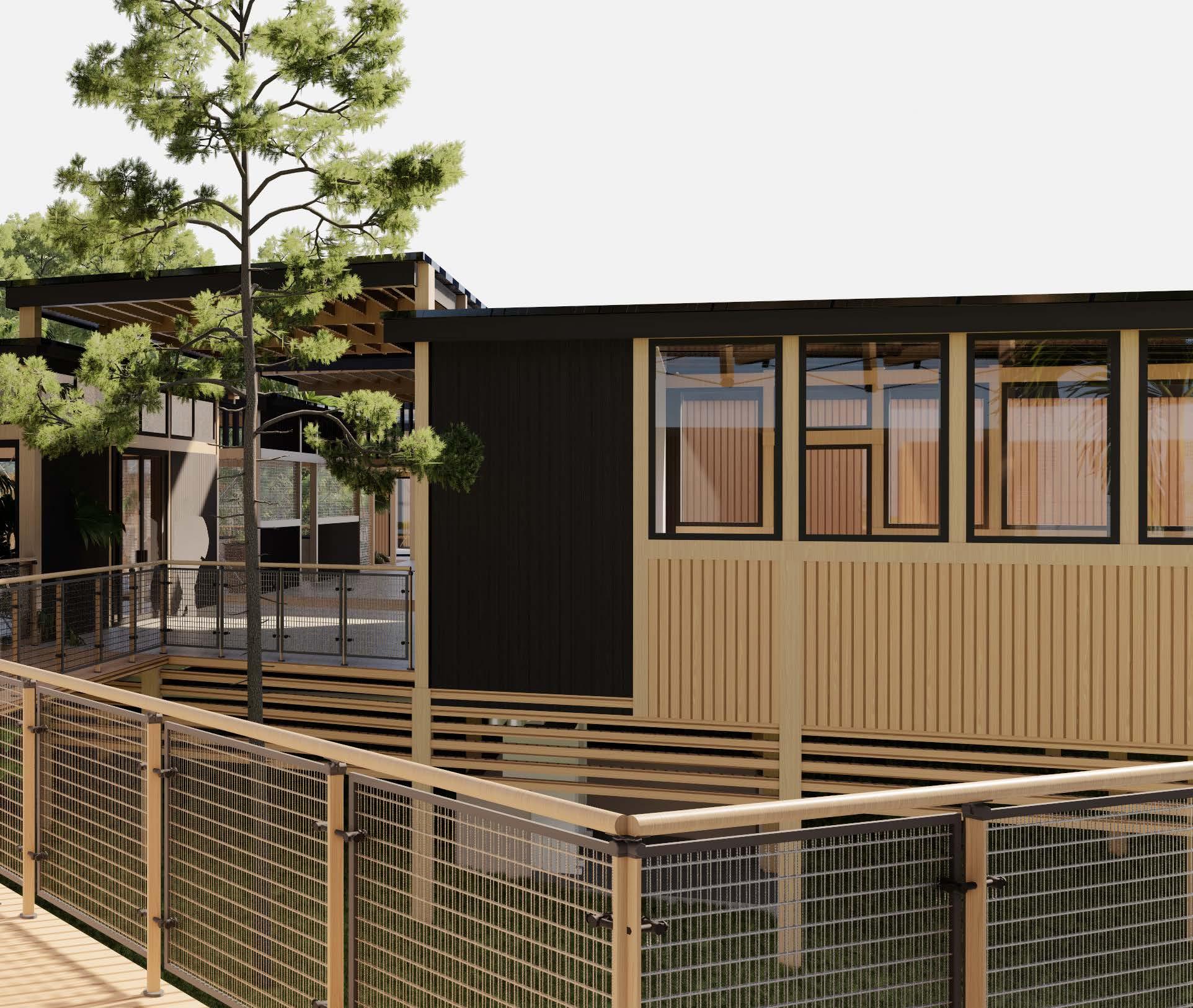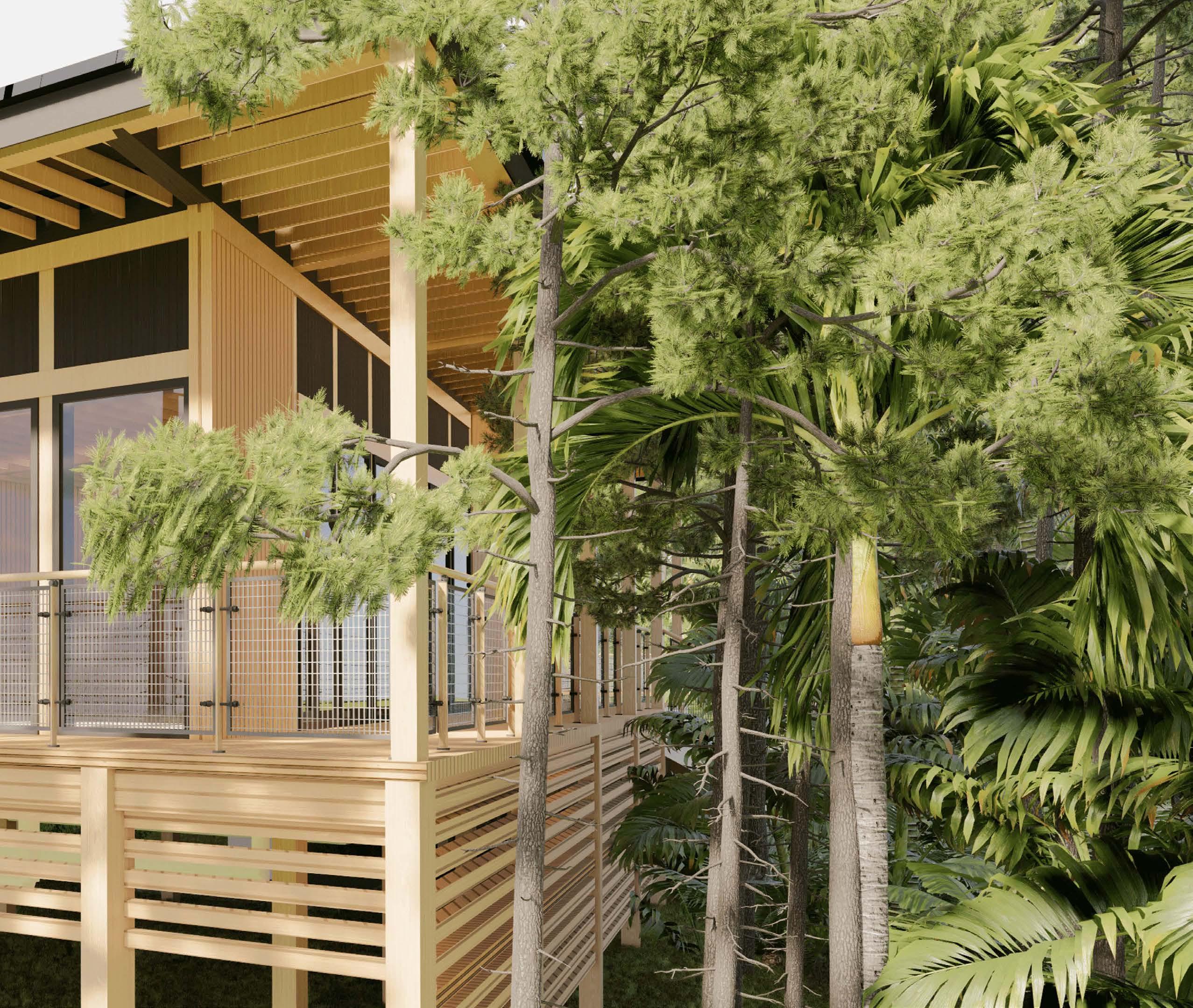 The Hunting Island Center for Oceanography is a 25,875.41 sf campus located in the Hunting Island State Park Nature Center Trail, Beaufort, South Carolina. It contains classroom buildings, an exhibition center, laboratories and an open-air auditorium. It is situated on a peninsula on the way to the Little Hunting Island beach from the Hunting Island State Park’s Nature Center trail. The site of Hunting Island is delicate and ephemeral. In about a hundred years, the shore would have receded to where the existing site will then be submerged. This project’s initiative is to exist on the site and embrace its changes: one building will stay behind collecting data even after people are no longer able to visit, and the rest of the buildings will be disassembled to have their parts re-used or recycled. The assembly of the “temporary” buildings is simple and of local materials. The idea is to take the buildings apart once the flooding of the site is imminent.
