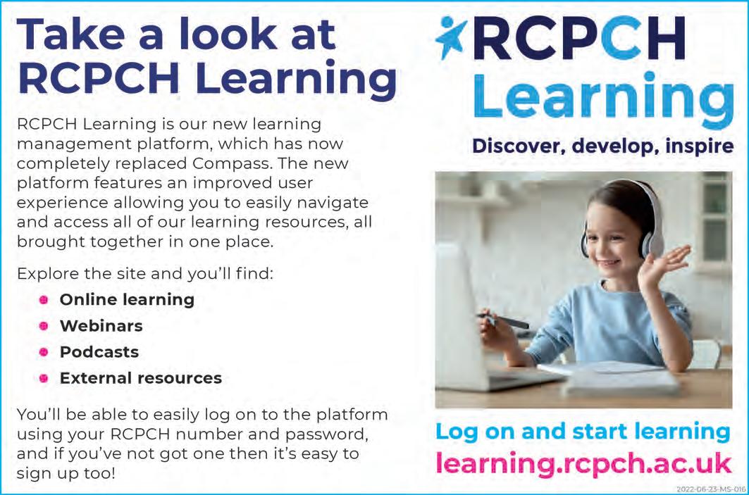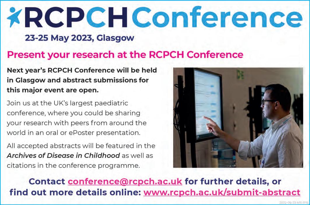 A warm welcome to Dr Emma Dyer (p.8), Chair of the Trainees Oversight Committee and Trainee Network. A veteran of the Trainees’ Committee, and a committed advocate for paediatricians in training, Emma will oversee the transition to Progress+, the new paediatric training structure coming in 2023!