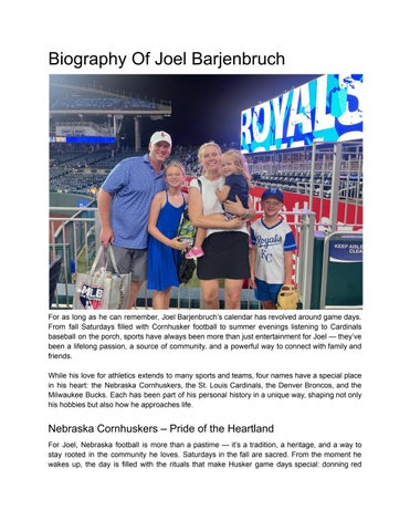 Some people find comfort in keeping life steady and predictable, but Joel Barjenbruch has always been drawn toward movement, curiosity, and growth. His story is less about routine and more about a constant search for meaningful experiences. He is not defined by titles or possessions but by how he lives his life—with care, purpose, and an appreciation for the connections he makes along the way. Family has always been Joel’s foundation. He shares his life with Stacey, his wife, and their three children; together they have built a home centered on warmth and togetherness. He and Stacey view their marriage as more than just a partnership; it is a shared journey that reflects their common love for wine, cooking, and opening their doors to friends. Their kitchen often becomes the heart of family gatherings, the wine cellar a place of memory and discovery, and the dining table a setting where laughter and stories are exchanged. As a father, Joel sees raising his children as a privilege and a responsibility. He is deeply invested in teaching them through experiences—whether traveling together, preparing meals outdoors, or sitting down for Sunday dinners. He hopes to pass along his guiding principles: always continue moving forward, place relationships above everything, and do good in the world. These values, for him, are not just words but practices that shape his actions daily. Food and wine are two areas where Joel’s curiosity and passion have found lasting expression. His collection of wines, especially those from Napa Valley, reflects years of exploration, conversations with winemakers, and evenings of tasting and learning. For him, sharing wine is never just about what’s in the bottle but about the history, people, and experiences behind it. This perspective has made his home a welcoming place for tastings and pairings shared with family and friends.