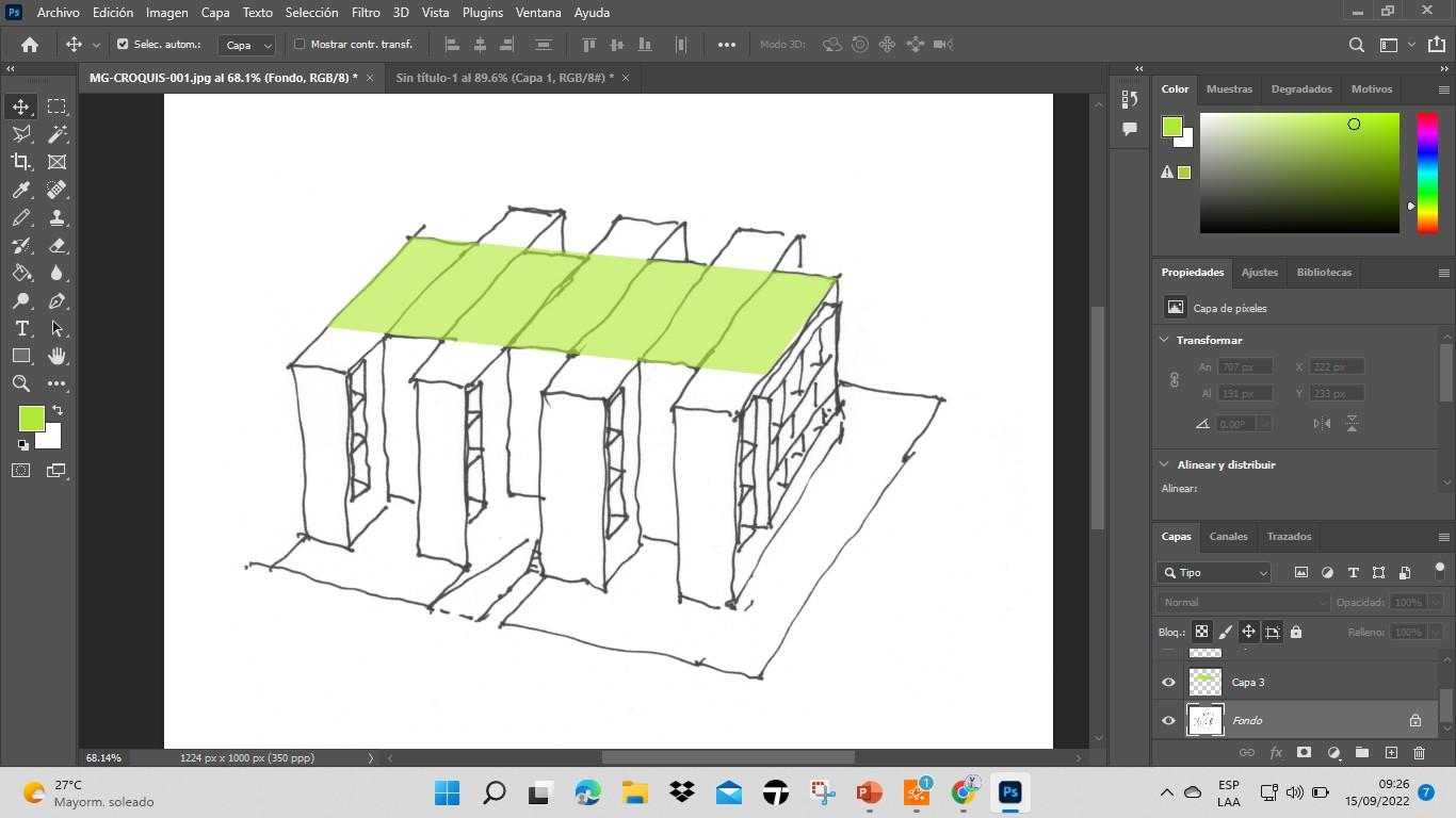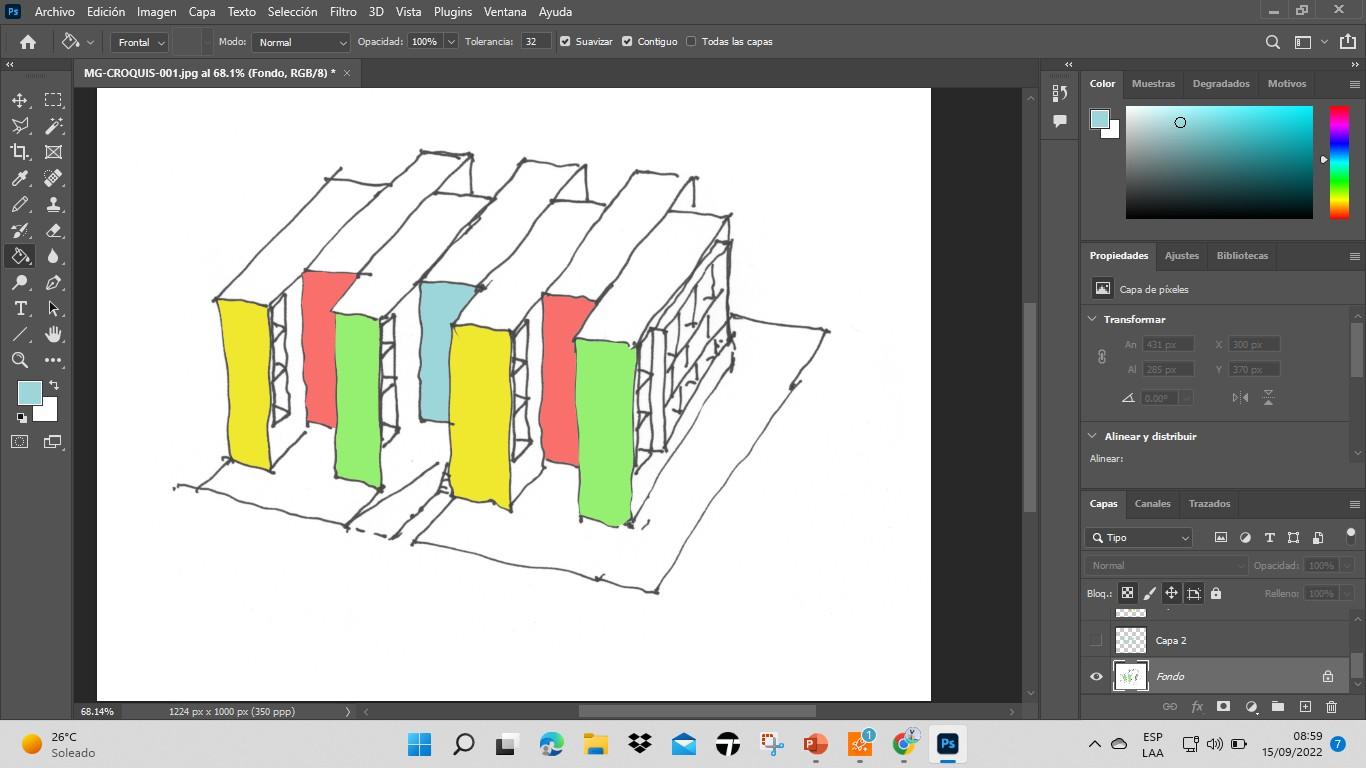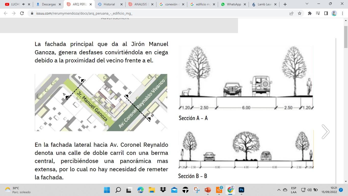 Fachada principal que da al Jirón Manuel Ganoza, genera desfases convirtiéndola en ciega debidoalaproximidad delvecinodelfrente.