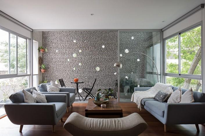 Muros del exterior texturizado con agujeros que proveen iluminación y dotan a los departamentos un espacio tranquilo y cómodo.