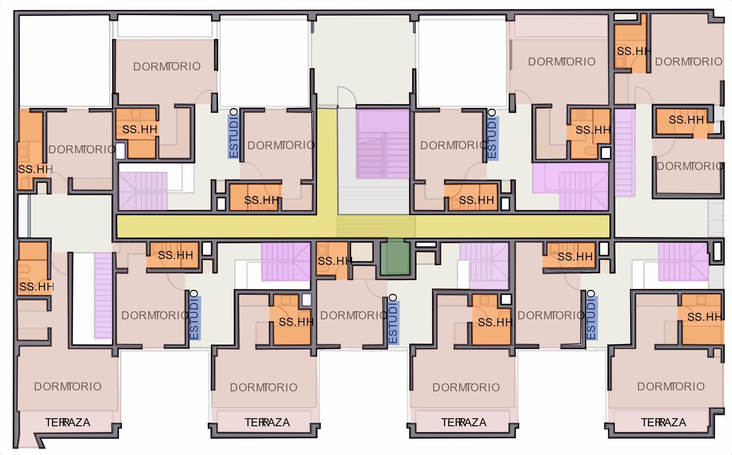 El proyecto propone un programa Multifamiliar con tipos y dimensiones Variadas de departamento, buscando Mixidad en la composición familiar de sus ocupantes