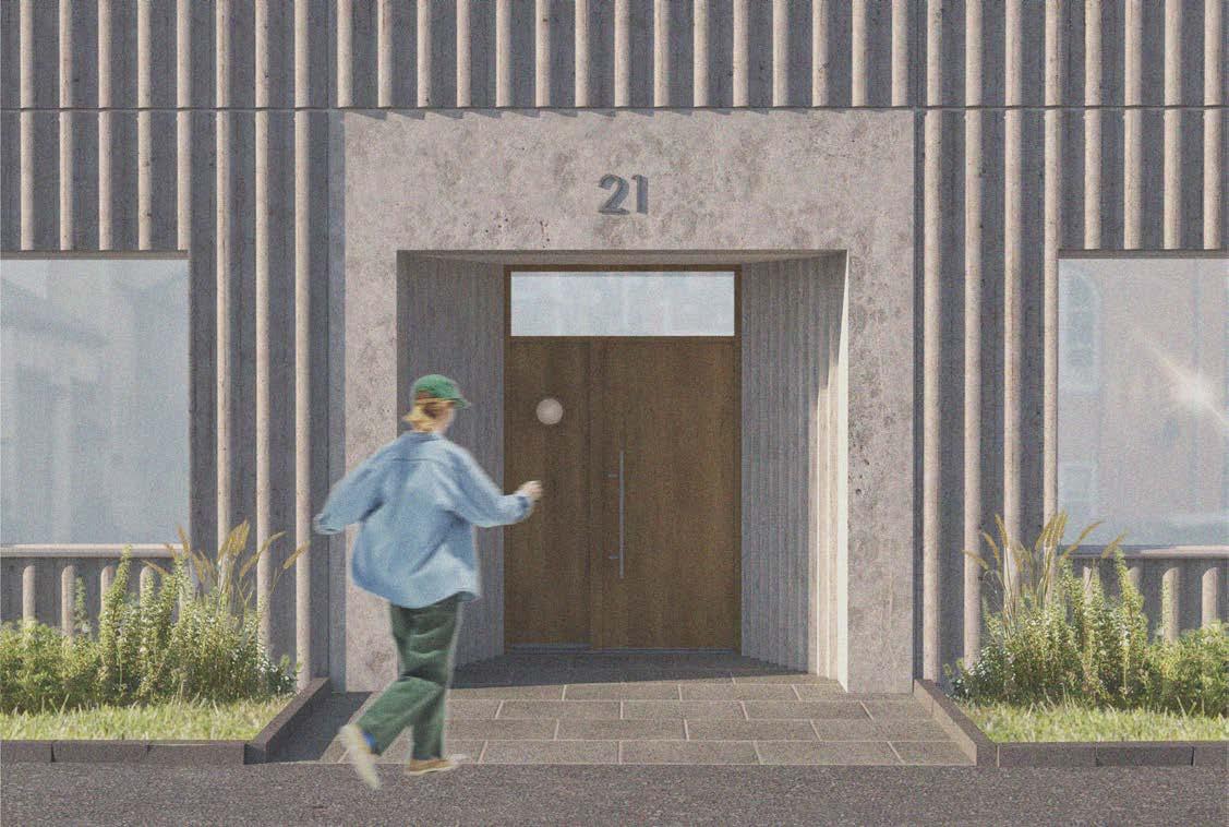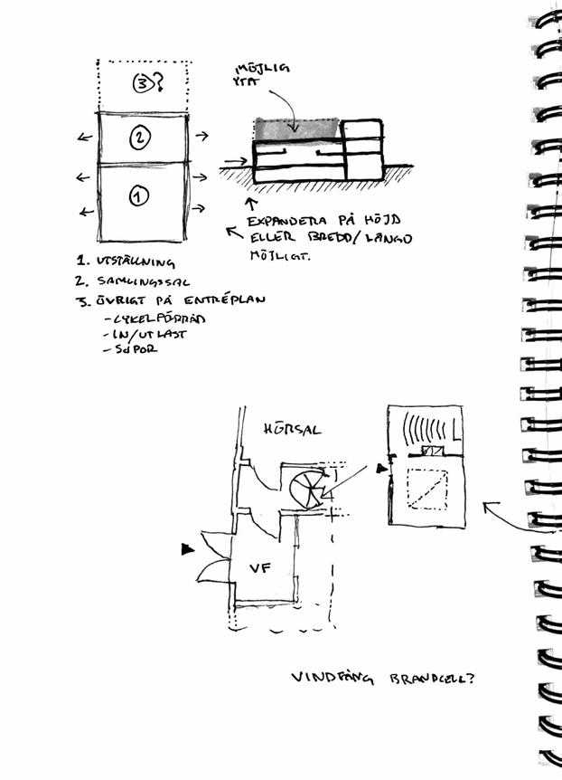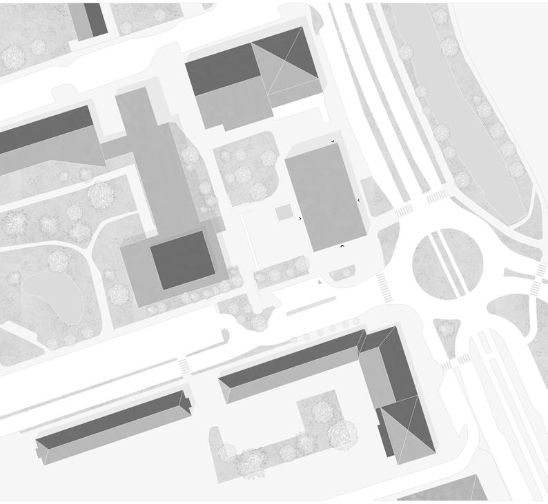 This project proposes a new building that complements the existing City Hall in Mölndal, designed to unite transparency, accessibility, and civic function. Organized around a central threestorey light court, the building creates a bright and welcoming interior atmosphere. A transparent ground floor with open exhibition spaces, inviting passersby to engage with the city’s activities. Clear orientation is achieved through two spiral staircases flanking the light court: one leading to citizen services and offices, and the other descending to a foyer and assembly hall with natural light.