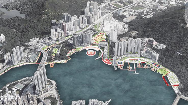 Wong Chuk Hang is a place sandwiched between two mountains. My plot is in the west of Wong Chuk Hang, which is a piece of waterfront. My theme is neighborhood to thewaterfront. The main functions of the area are a new residential area, a yacht club, a group of shipbuilding plants and an office park. There are various kinds of waterfront space within the plot, but the accessibility and continuity of the waterfront area are poor, which is also the most critical problem to be solved in this design. At the same time, the land area that can be used and used for activities is not large, because the slope fluctuation of Wong Chuk Hang is large.