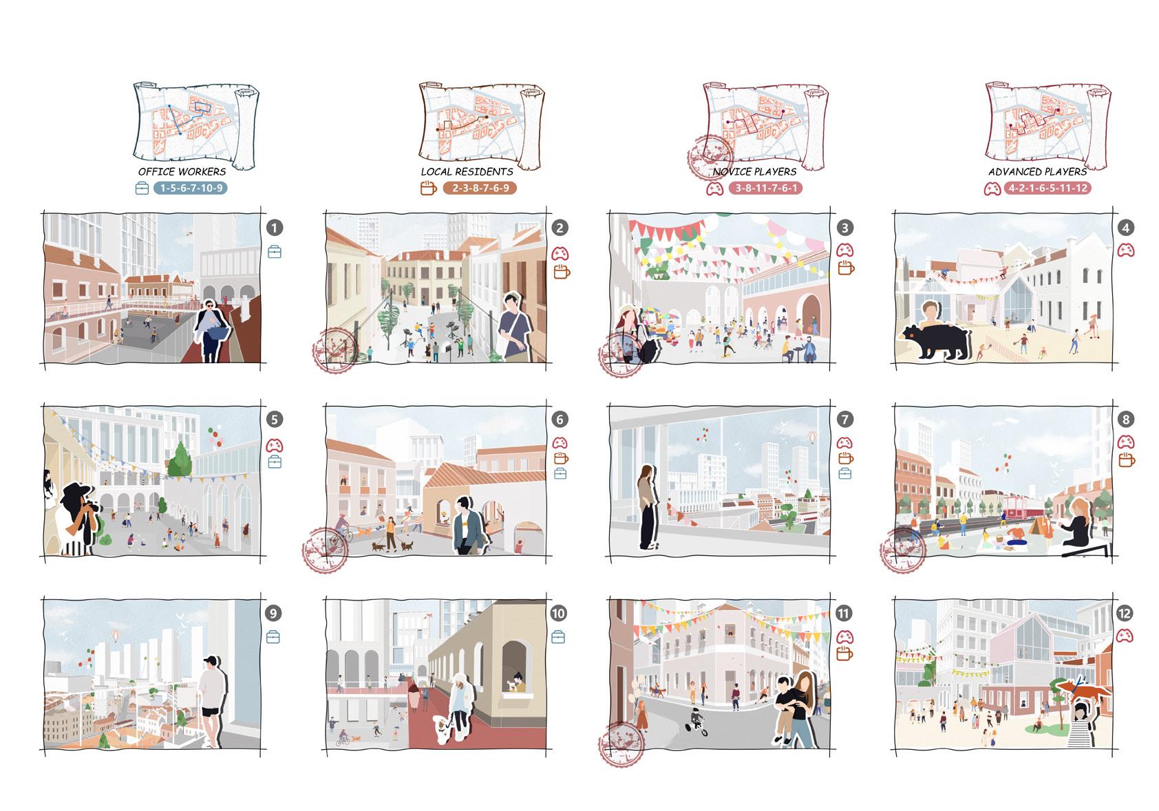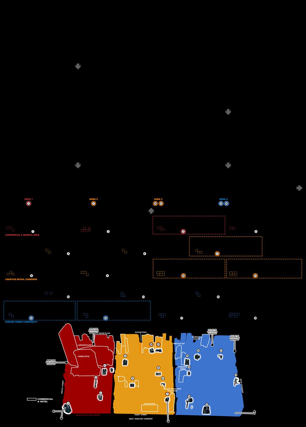 MACRO MESO HISTORY MAPS PEOPLE CHARACTER Industrial office area NewWorld First Bus 1928 Fisherman 1952 Family & Kids 1970 Tourists 2020 Officers Nam Long Shan Road Cooked Food Market Heung Yip Path MTR Entrance Bridge
