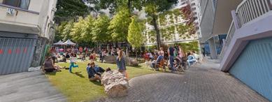 People can shuttle between the arch corridor and the square for different activities