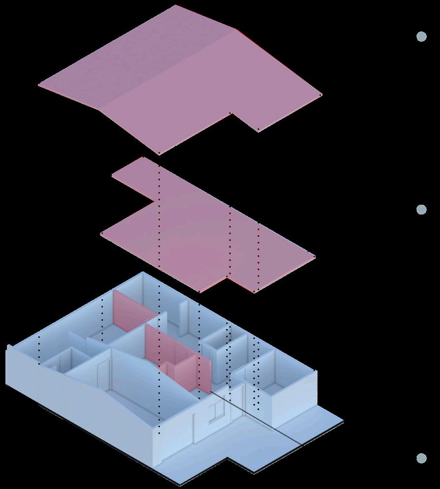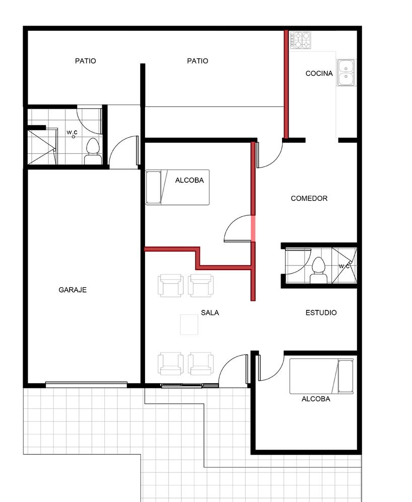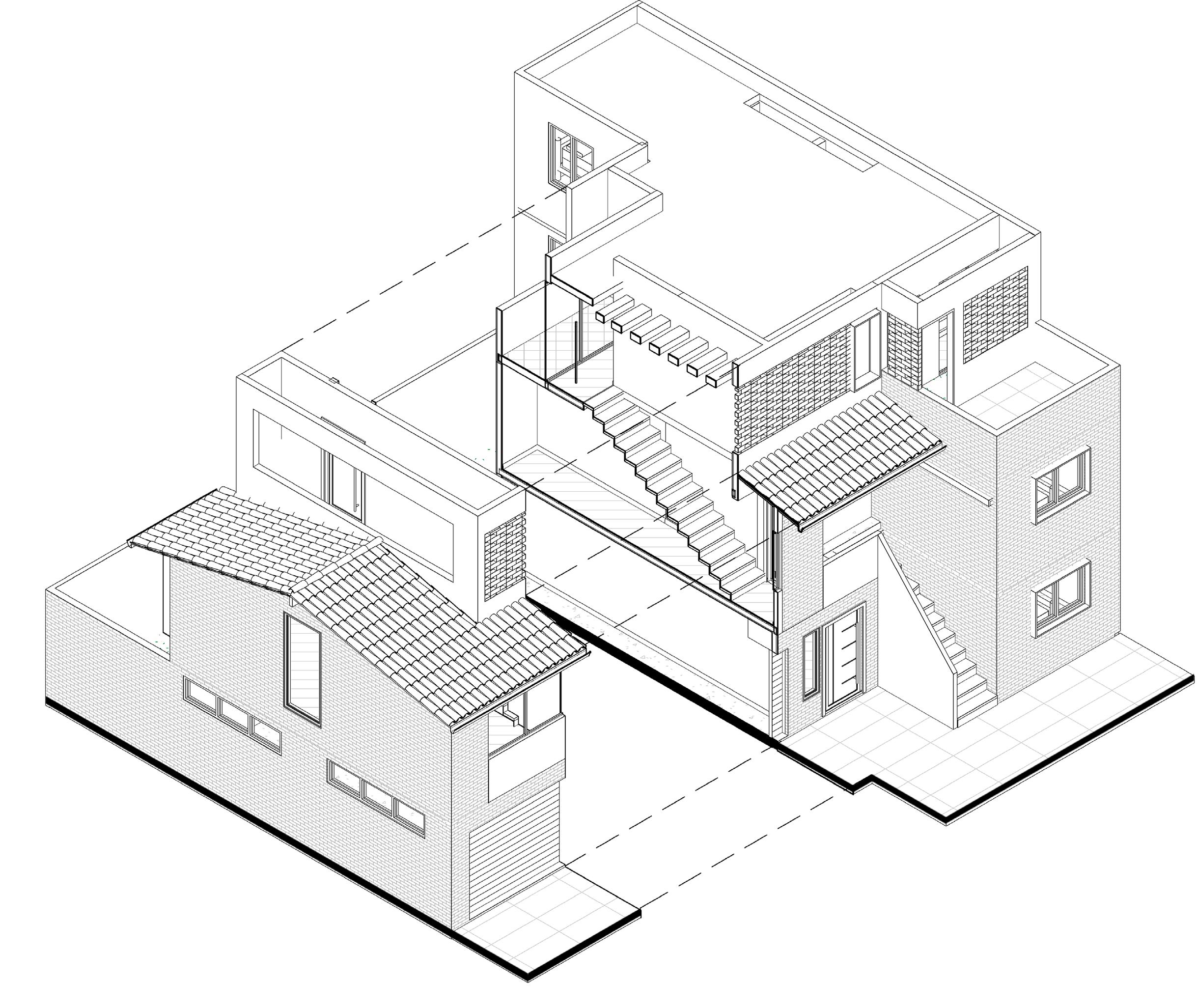 Se plantea una mejor distribucion en la vivienda existente unificando zona social y ahislando las habitaciónes. En el segundo piso se desarrollan dos viviendas aprovechando la manzarda para una de ellas.