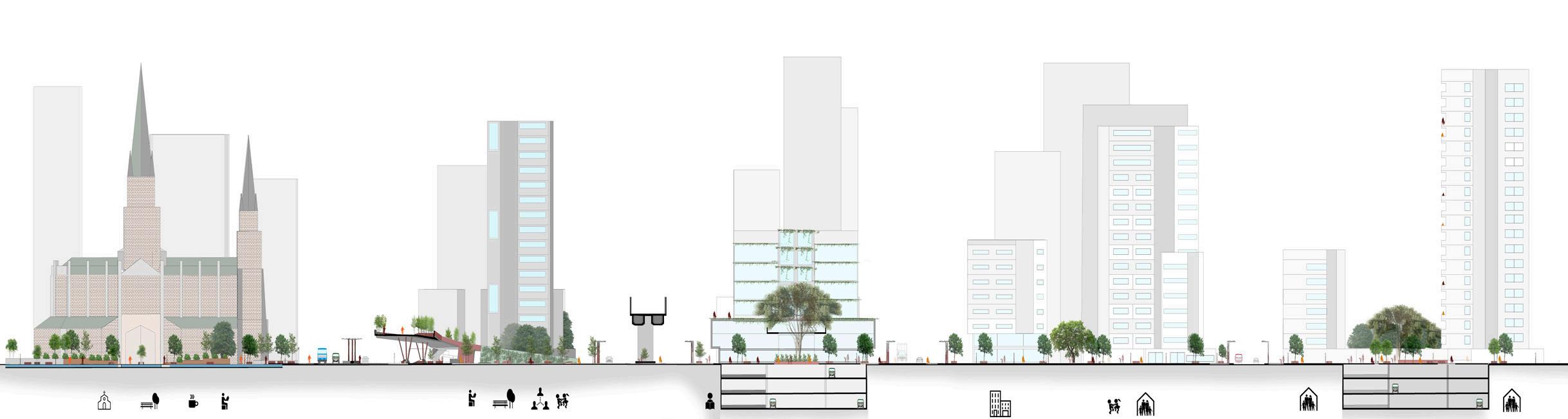 Permeabilidad Proyección En Alturas Zócalo Urbano Volumen En yConvenciónAlturaseventos yConvencióneventos Zonas libres en CulturaComercioComercioalturas Espacio Público Inmediato DESARROLLOEJEMPLIFICACIÓNDELA INVESTIGACIÓN ELEMENTOS QUE DESARROLLAN LA IDEA La propuesta se desarrolla mediante los crite rios identificados y concluidos en los estudios de caso, a partir de parámetros que contribu yan al desarrollo de la vida urbana las 24 horas del día. 33