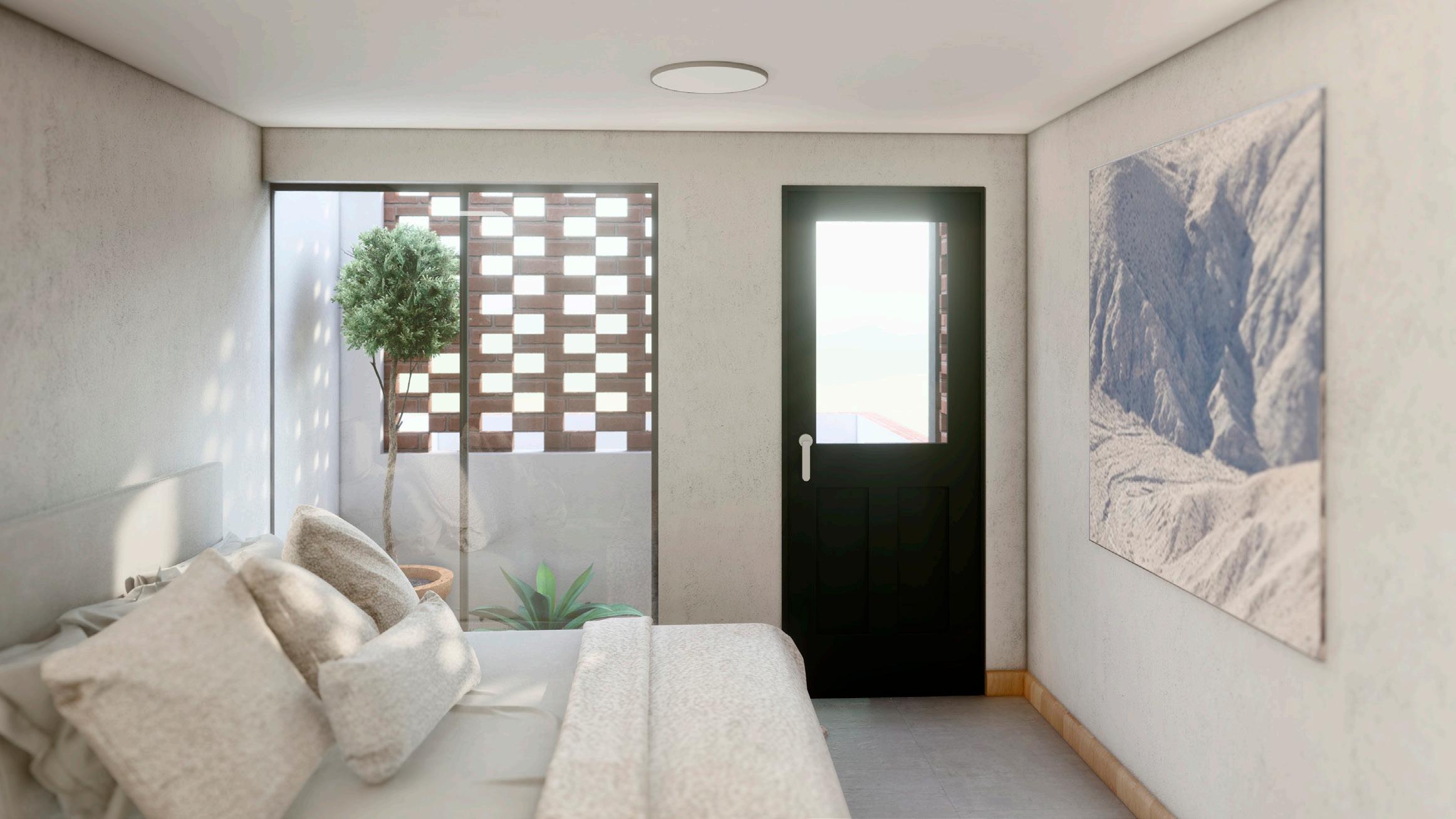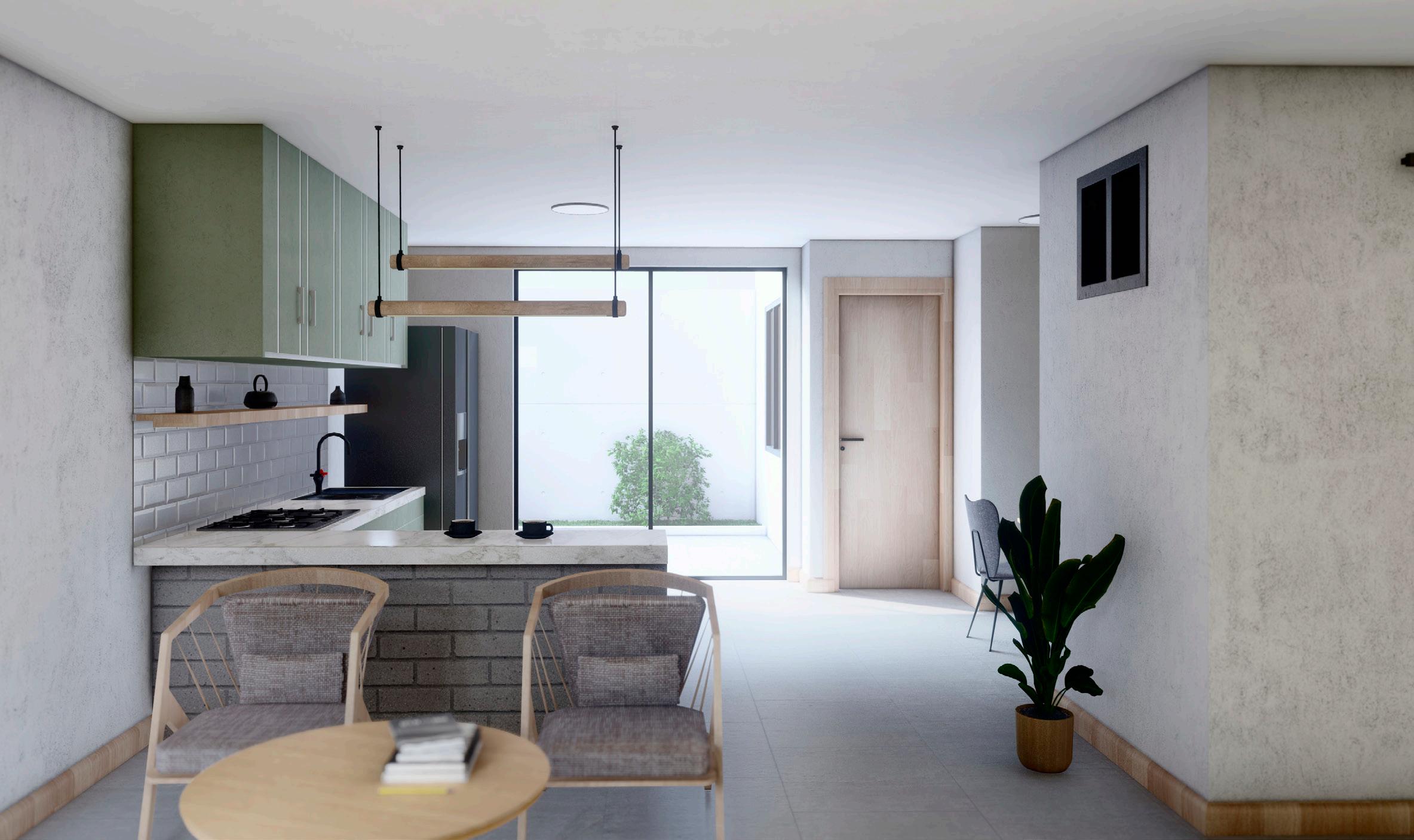 Esta planta cuenta con la vivienda antigua remodelada con una nueva distribución, ingresando por la zona so cial que integra: sala, cocina y comedor con una visual mas amplia desde el ingreso hasta el patio, permitiendo ventilación cruzada y una mayor iluminación.