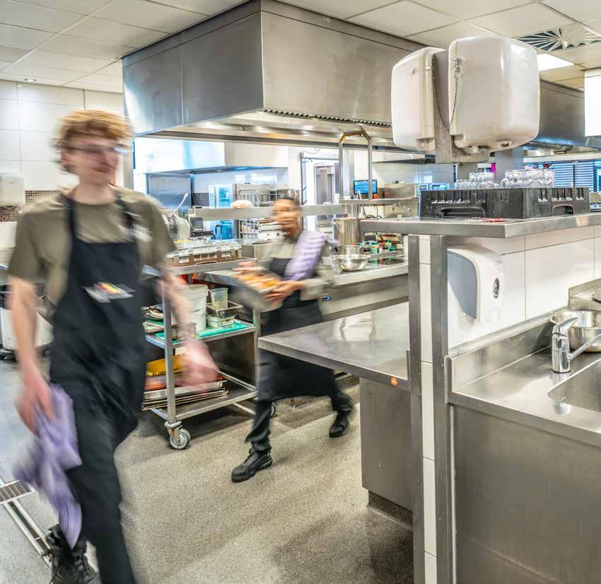 vriendelijke kok uit Syrië”, zegt Chris. “We hebben ook een kokkin uit Oekraïne, die overigens niet via DZB is binnengekomen. Ook zij is een mooi voorbeeld van hoe wij met anderstaligen kunnen werken. Met een vertaalapp kan zij toch alle recepturen maken.”