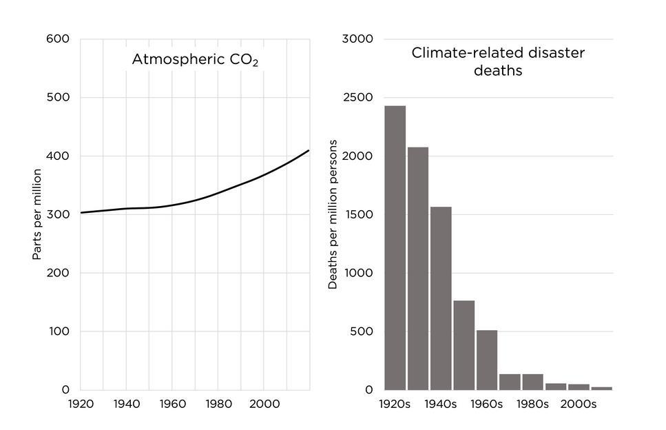 • World deaths from Climate causes have declined 98% over the last century. Increased Resilience and Climate mastery.
