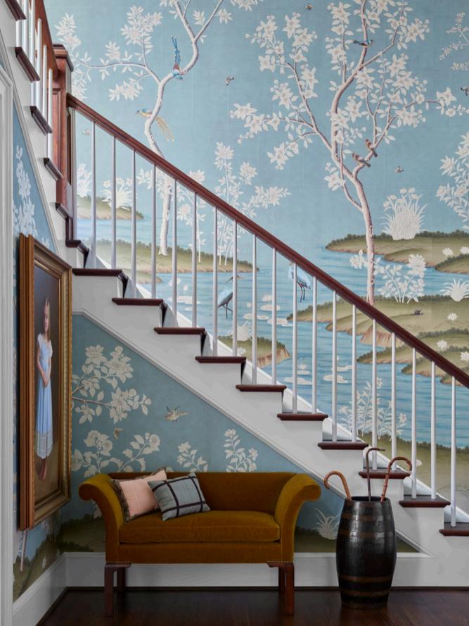 FOR MORE THAN A CENTURY, GRACIE STUDIO HAS SHAPED INTERIORS THROUGH HANDPAINTED WALLCOVERINGS, TRANSLATING CENTURIES-OLD PAINTING TRADITIONS INTO CONTEMPORARY ARCHITECTURAL SETTINGS FOUNDED IN 1898, THE STORIED ATELIER INTRODUCED AMERICAN INTERIORS TO ASIANINSPIRED PANORAMAS, DRAWING FROM CHINESE AND JAPANESE PAINTING TRADITIONS AND REIMAGINING THEM FOR MODERN LIVING WHERE WALLS BECOME IMMERSIVE NARRATIVES RATHER THAN MERE SURFACES.