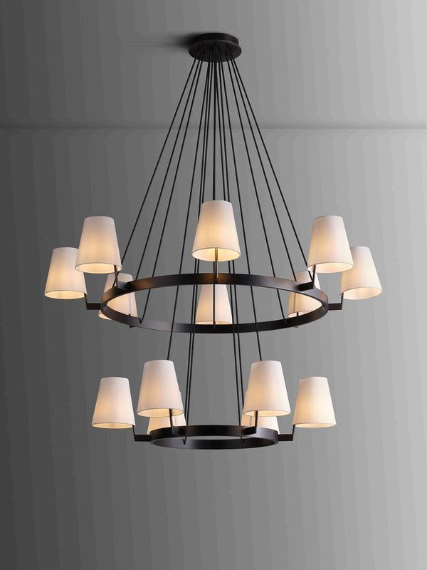 5 | Jonathan Browning Studio’s Corniche Circular Chandelier is handmachined from solid brass and finished in a warm patina, shaping craftsmanship into a softly luminous form. Diffused through ivory silk shades, its generous scale reads as quietly sculptural and restrained.