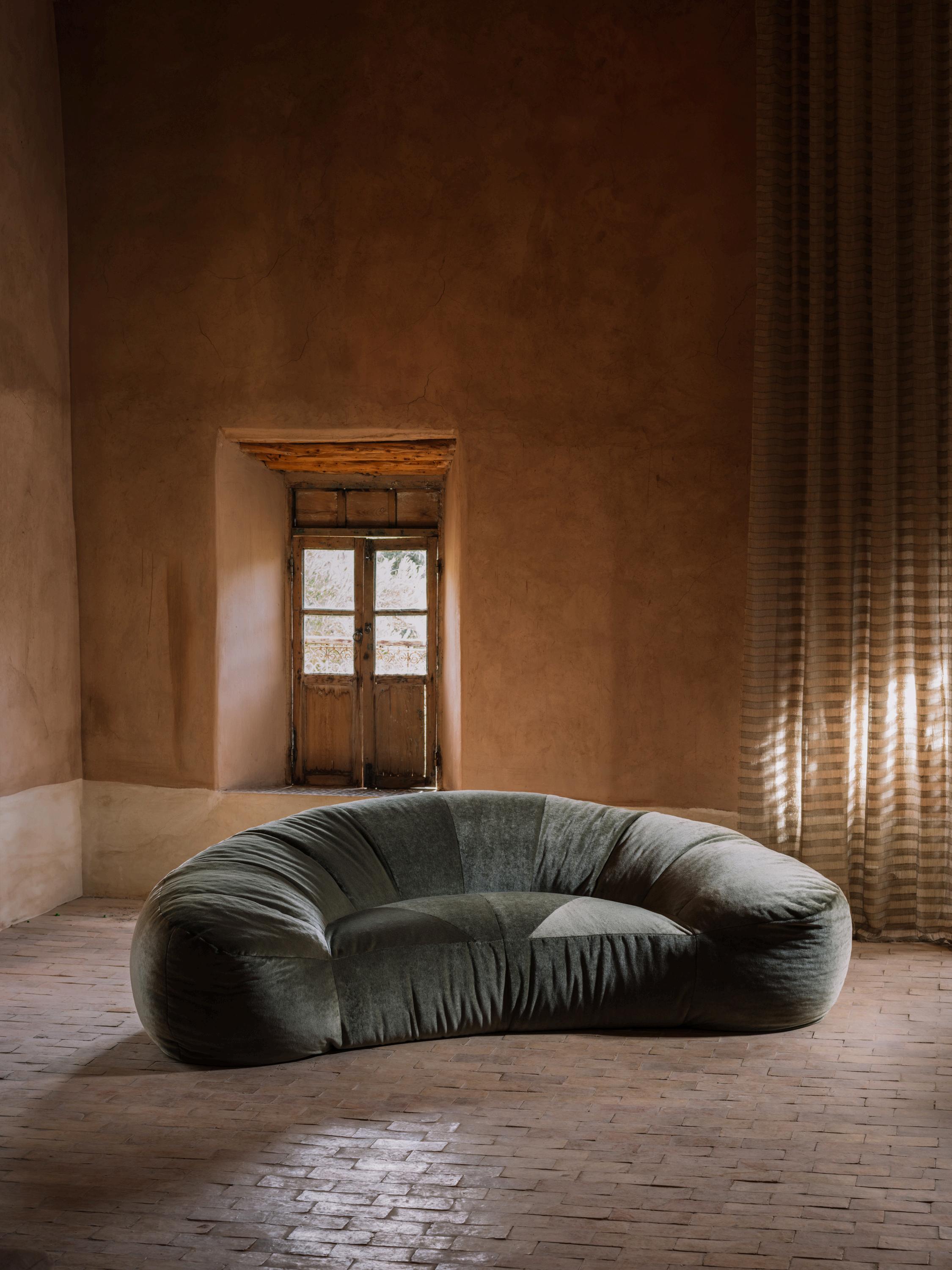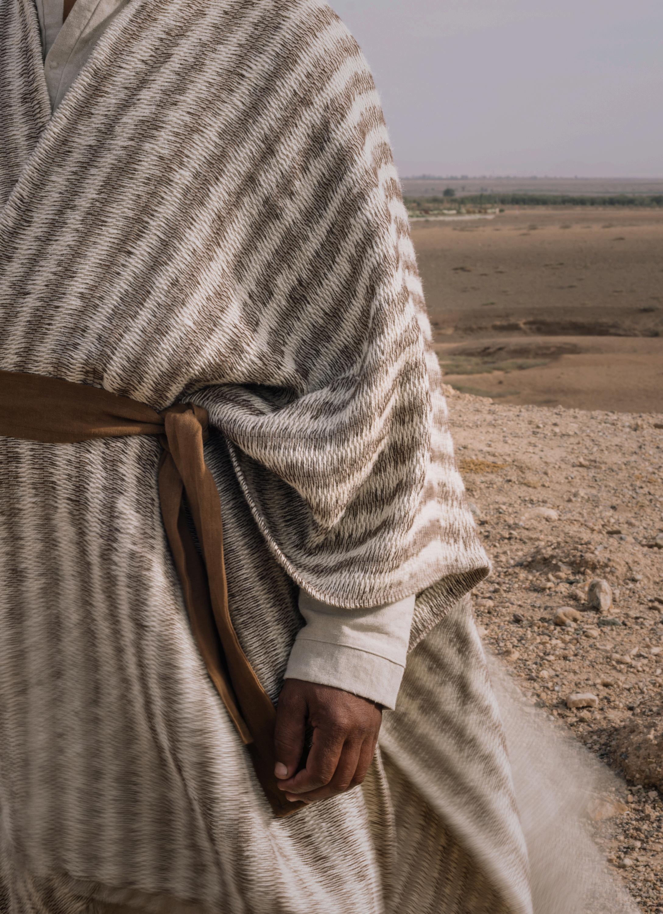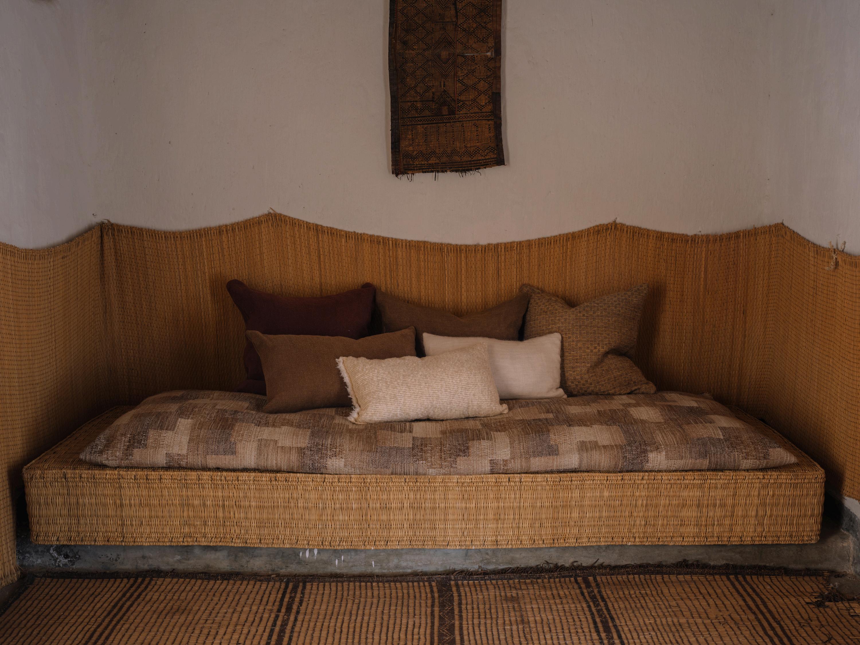LINEN, WOOL, JUTE, AND MOHAIR APPEAR AS RICHLY TEXTURED WEAVES WOVEN IN TONAL GRADIENTS AND SOFTENED CONTRASTS, EMPHASIZING DEPTH, WEIGHT, AND THE QUIET MOVEMENT OF LIGHT ACROSS EACH SURFACE GROUNDED IN THE EARTHEN ARCHITECTURE AND EXPANSIVE LANDSCAPES OF MOROCCO, AZIMUTH FRAMES TEXTILES AS ATMOSPHERE. LESS DECORATIVE THAN DIRECTIONAL, EACH PIECE ESTABLISHES A SENSE OF PLACE SUBTLE, SHIFTING, AND ATTUNED TO THE HORIZON IT REFERENCES