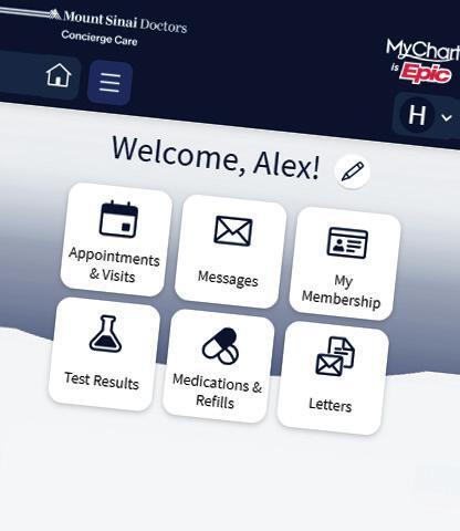 Conveniently synced with Mount Sinai’s MyChart, members have access to an online membership portal to: