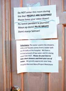 Sleep was a luxury for the hardworking volunteers, as this sign on a dorm room door attests Brushing her hair in the