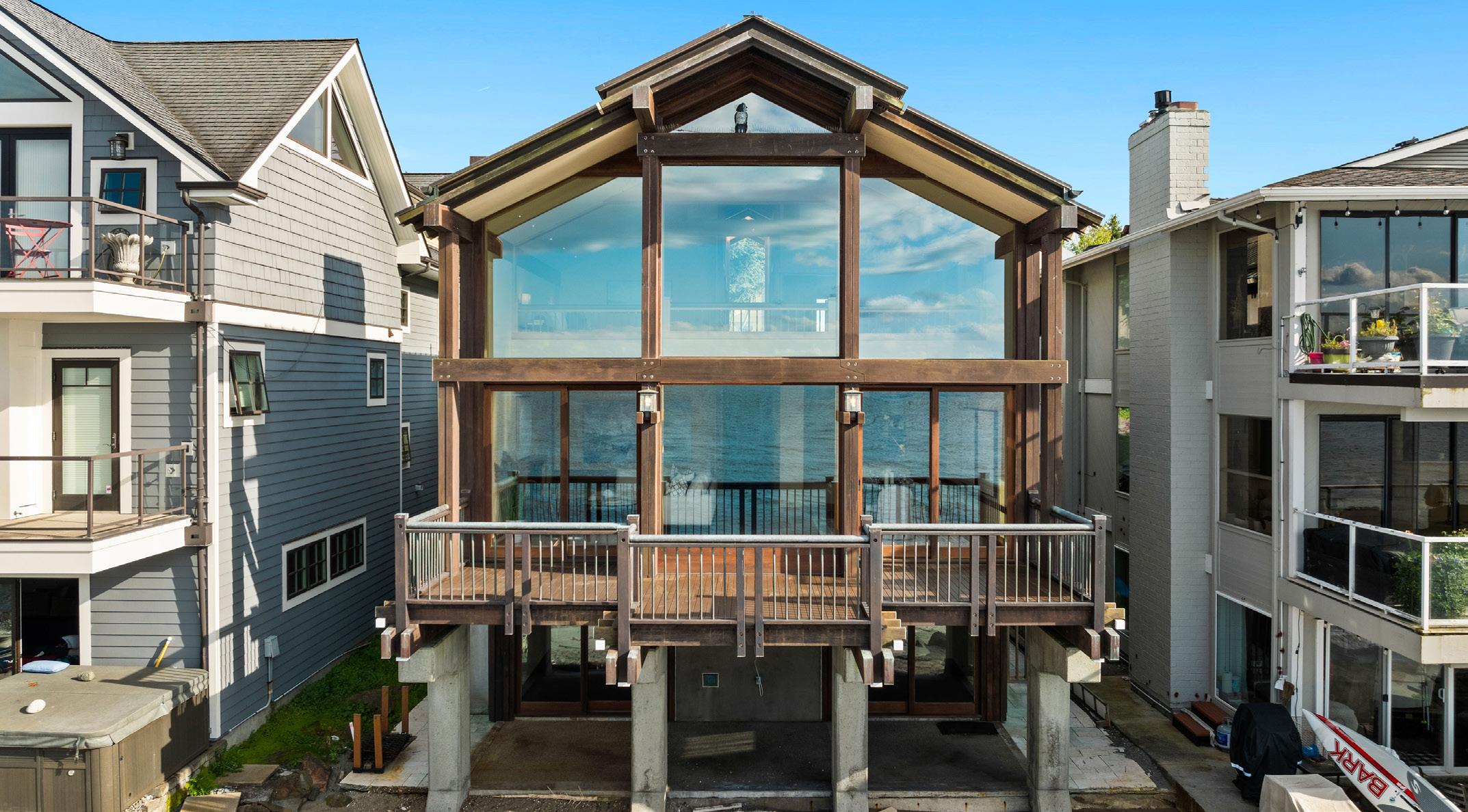 Exceptional NW contemporary masterpiece designed by Ross & Ralph Anderson. Nestled along the tranquil banks of coveted North Mercer Island. Through a private gate and charming path, this masterpiece showcases 80+ feet of no-bank waterfront & private covered dock. Extensive and extravagant re-envisioning, nearly every room is designed to take in the expansive views of the lake. Stunning finishes, extensive slab marble, smart steel windows, doors and captivating staircase, copper roof and fence, dream kitchen, breathtaking primary suite with spa-like bath, lake-level rec-room with a wet bar. The expansive living room with floor-to-ceiling windows leads to a gorgeous lake view. Dramatic spaces indoors & out, creating a sumptuous lifestyle opportunity.
