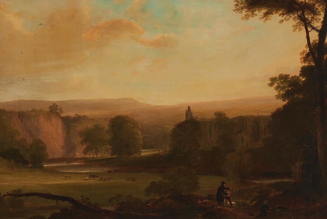Overall good condition. Dust accumulation, grime, and varnish discoloration commensurate with age. Very fine craquelure throughout, primarily in the tree foliage, and darker pigments, in the upper and lower right quadrants.