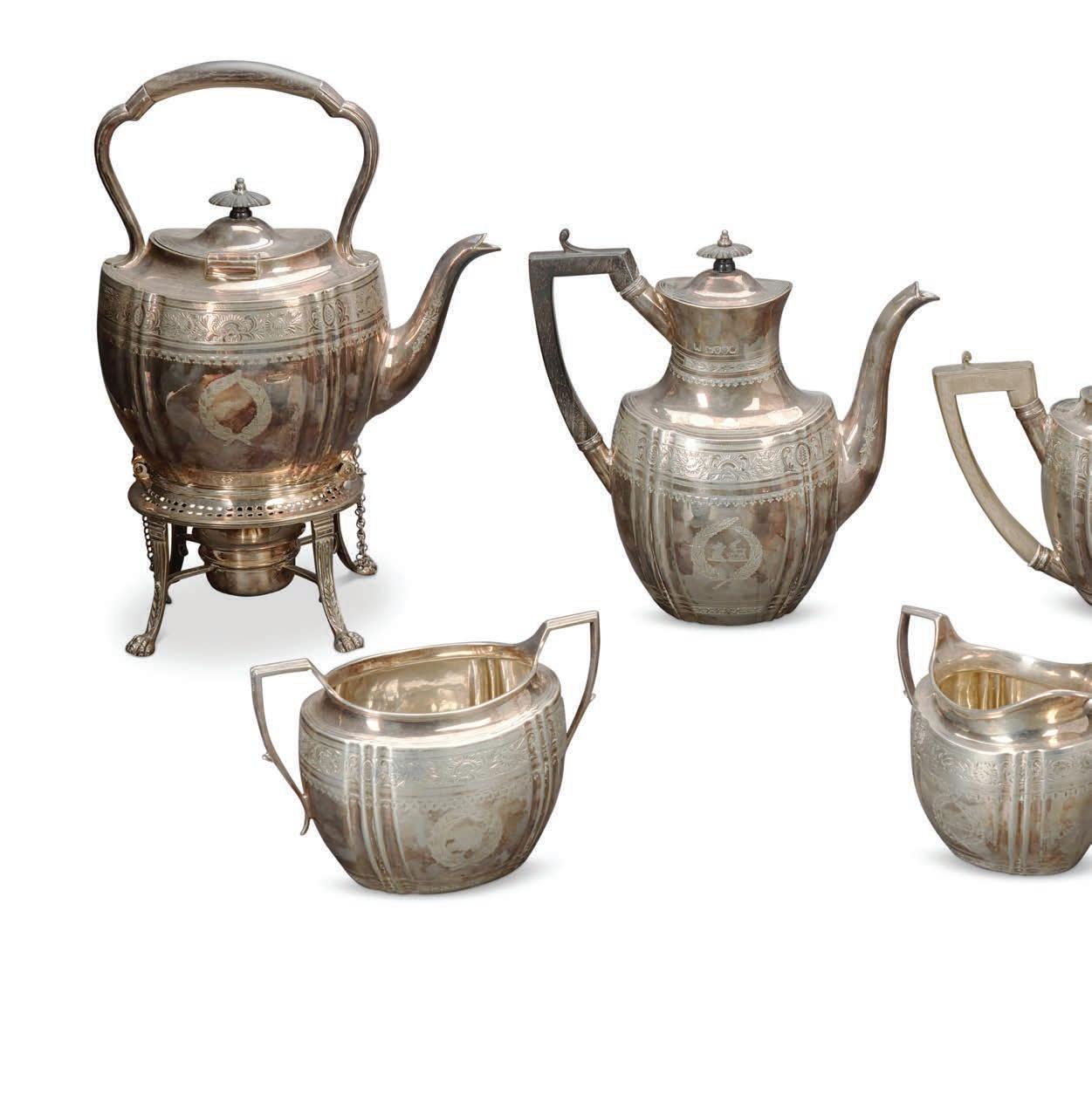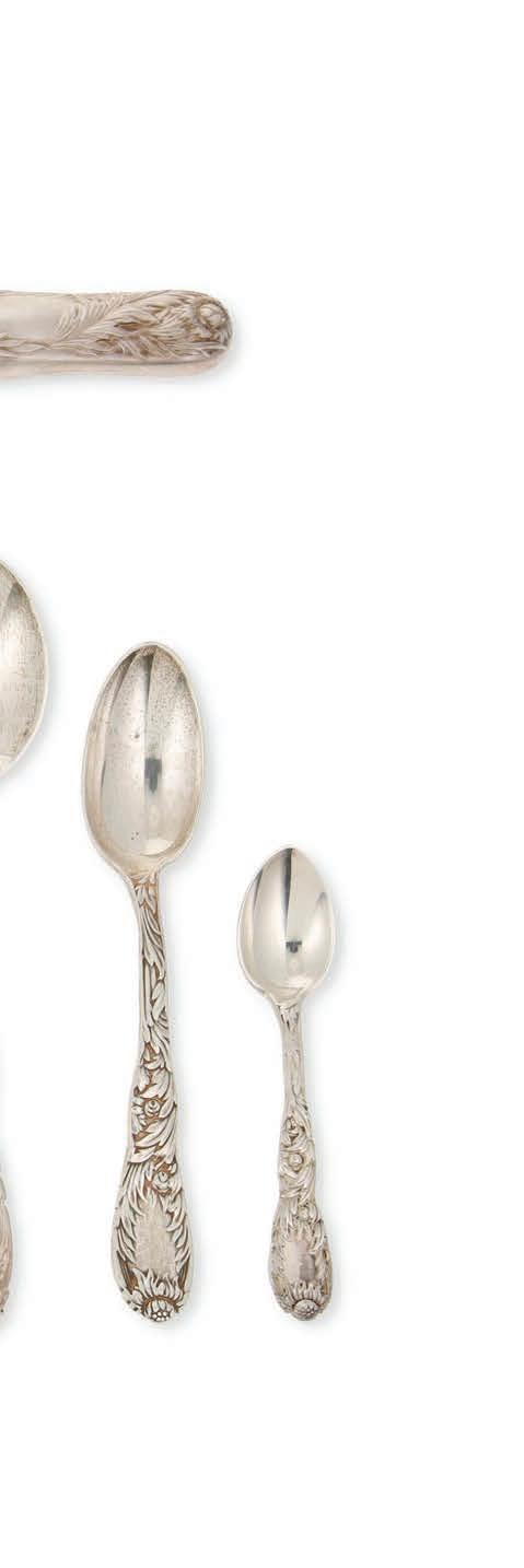 Overall good condition with tarnishing and light scratches commensurate with age. Some items with more tarnishing than others. One spoon with incised personalization “Frank Davis,” one with monogram “M.”