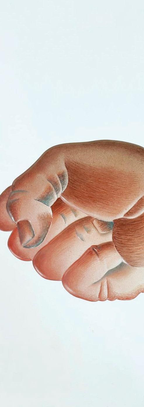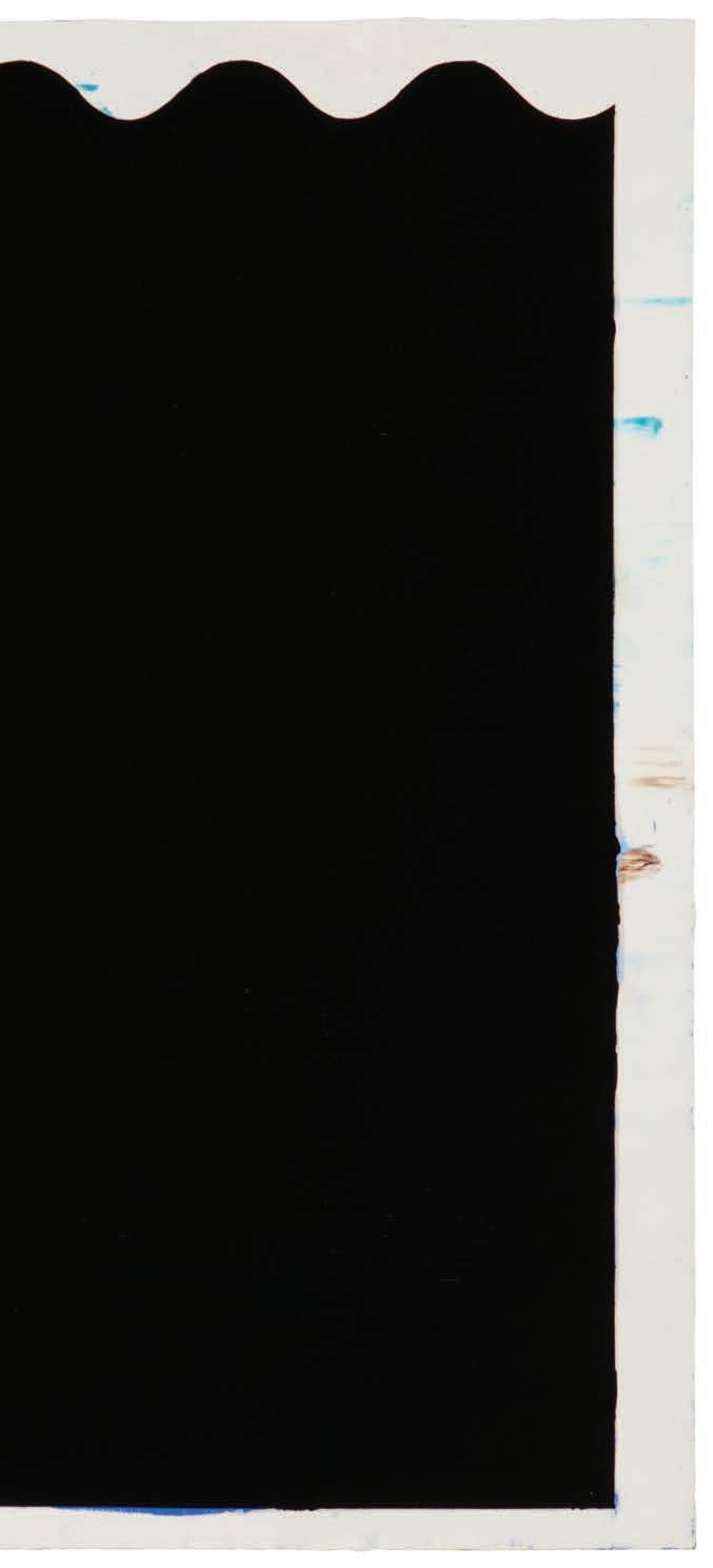 etching acids to corrode his copper plates to the point of eating holes through them, working on copper cut into the studio ceiling in order to maneuver them on and off the press, or creating a highlymelted paint stick and then piling it onto his plates with gloved hand—or even his feet—prior to (cf. https://www.timothytaylor.com/exhibitions/202-richard-serra-torqued-ellipses-and-rounds-9-newtechniques). The ink alone on many of Serra’s prints can easily weigh a pound or more. He eschewed and as is the case with our example of “Cool Down,” preferred to have his prints framed without most directly, inviting us to “touch” his intriguing surfaces simply by looking.