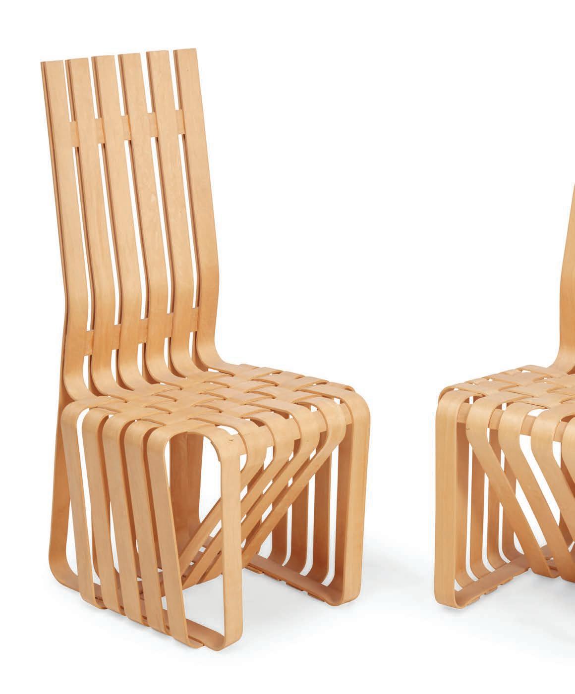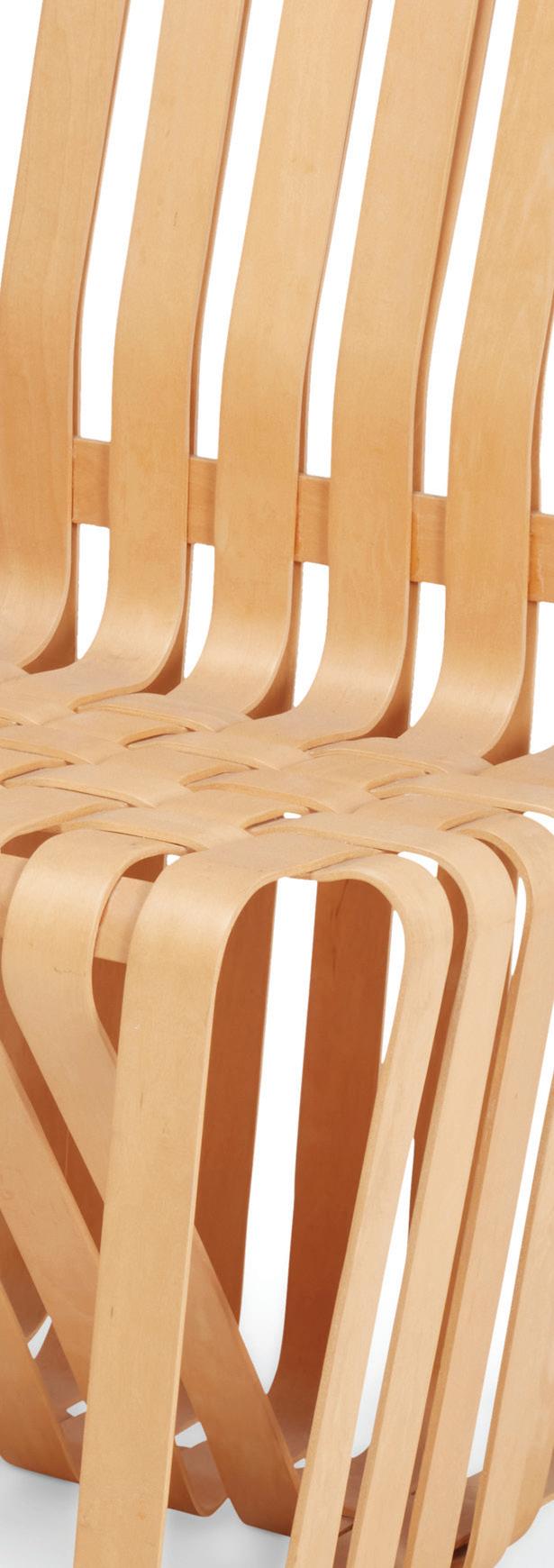 In 1992, Gehry introduced the “Bentwood Collection” Crafted from layered and interwoven plywood both lightweight and sturdy. The “High Sticking form with functional durability across various
