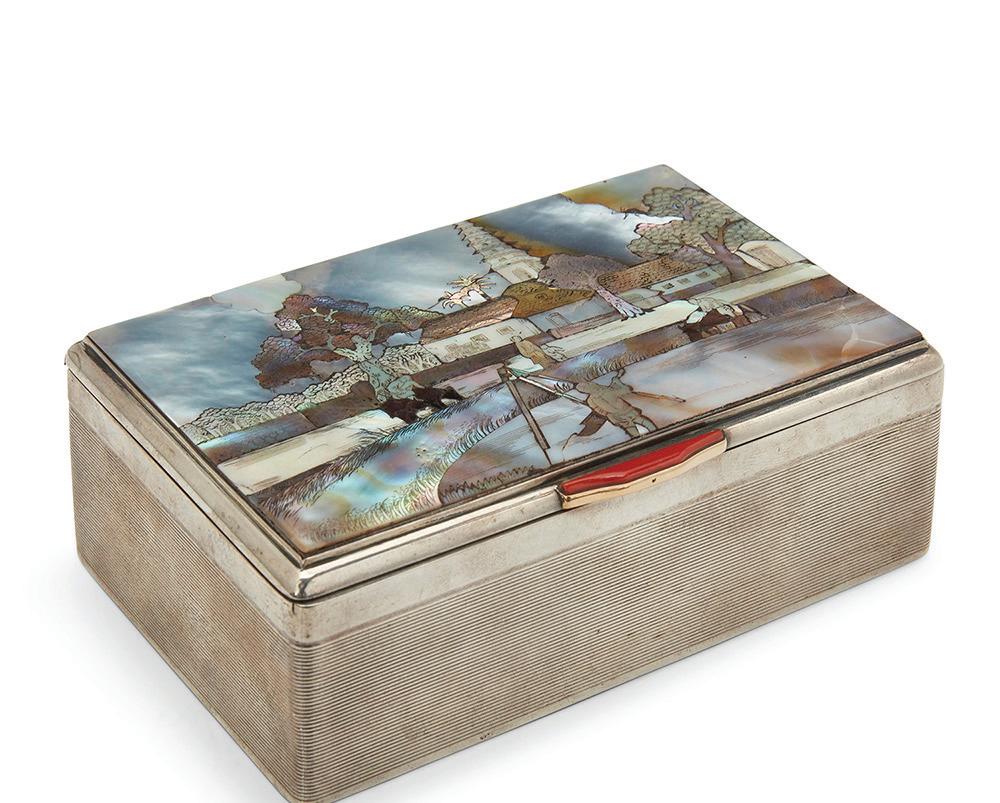 Cartier: An Art Deco Sterling Silver, Mother-of-Pearl and Coral Box, c. 1920s