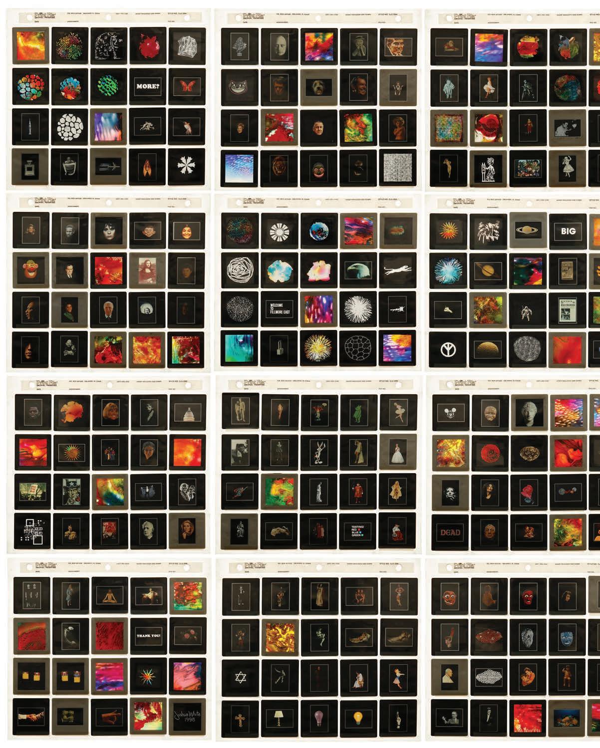 100 playing cards in colors in a milled Corian box Edition: 4000 in this fourth edition revised by Eno Unsigned; with the artists’ names printed as part of the descriptive text in the accompanying title/justification card and information booklet; Typecraft, Pasadena, CA, prntr.; Peter Norton, Santa Monica, CA, pub. Each card:3” H x 4.125” W; Corian container: 5.25” H x 6.25” W x 1.5” D irreg.