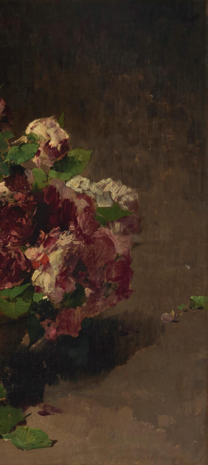 Still life with roses and case Oil on panel