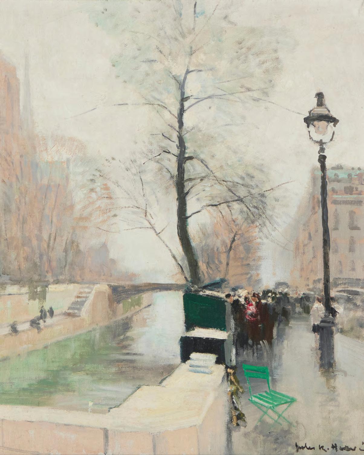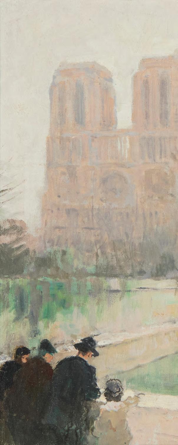 View of Notre Dame Oil on canvas laid to board Signed lower right: Jules R. Hervé 18” H x 21.5” W