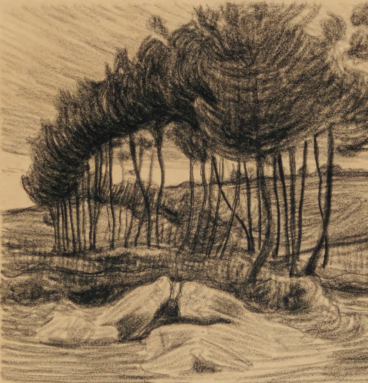 Signed with his anchor device, lower right: Hunter Wood; titled on a gallery label affixed to the frame’s backing board 30” H x 40” W
