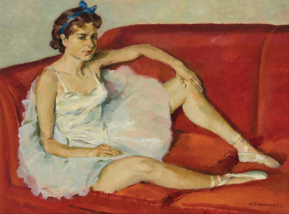 Signed lower right: W. Dooyewaard; titled in Dutch, “Danseres op ronde divan,” and numbered “No. 2” on the stretcher 29” H x 39.75” W